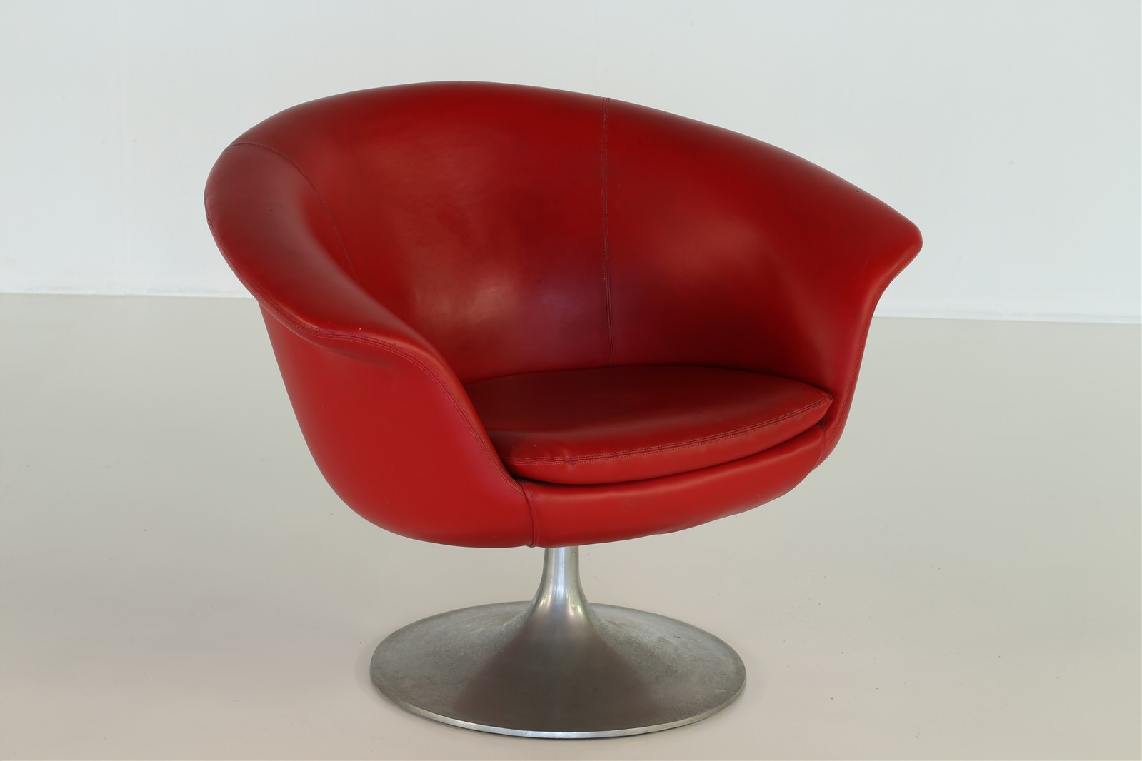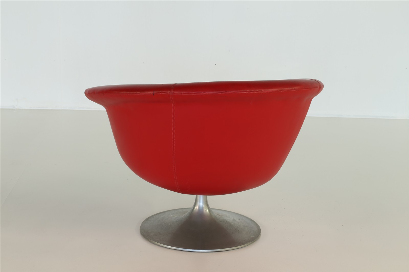 MANIFATTURA DEL XX SECOLO Poltrona rossa a base conica. eco pelle. Cm 86,00 x 65,00 x 65,00.