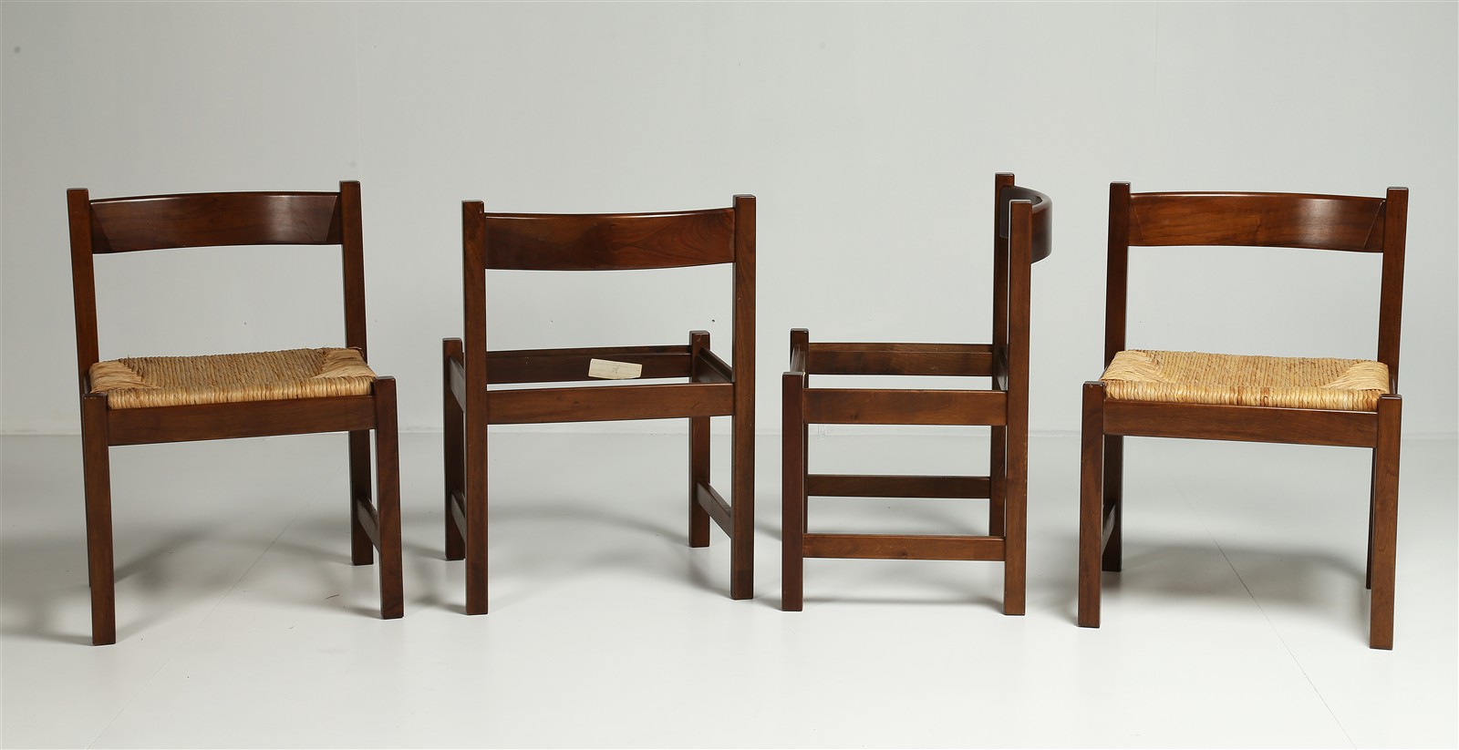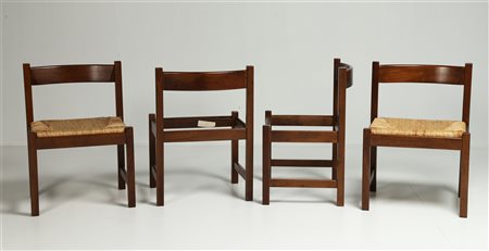 MICHELUCCI GIOVANNI (1891 - 1990) Lotto composto da n.4 sedie. Legno e paglia. Cm 52,00 x 75,00 x 40,00. Cartiglio serie Torbecchia. Stile anni '70. Produzione Poltronanova. Due sedie sono prive della paglia.