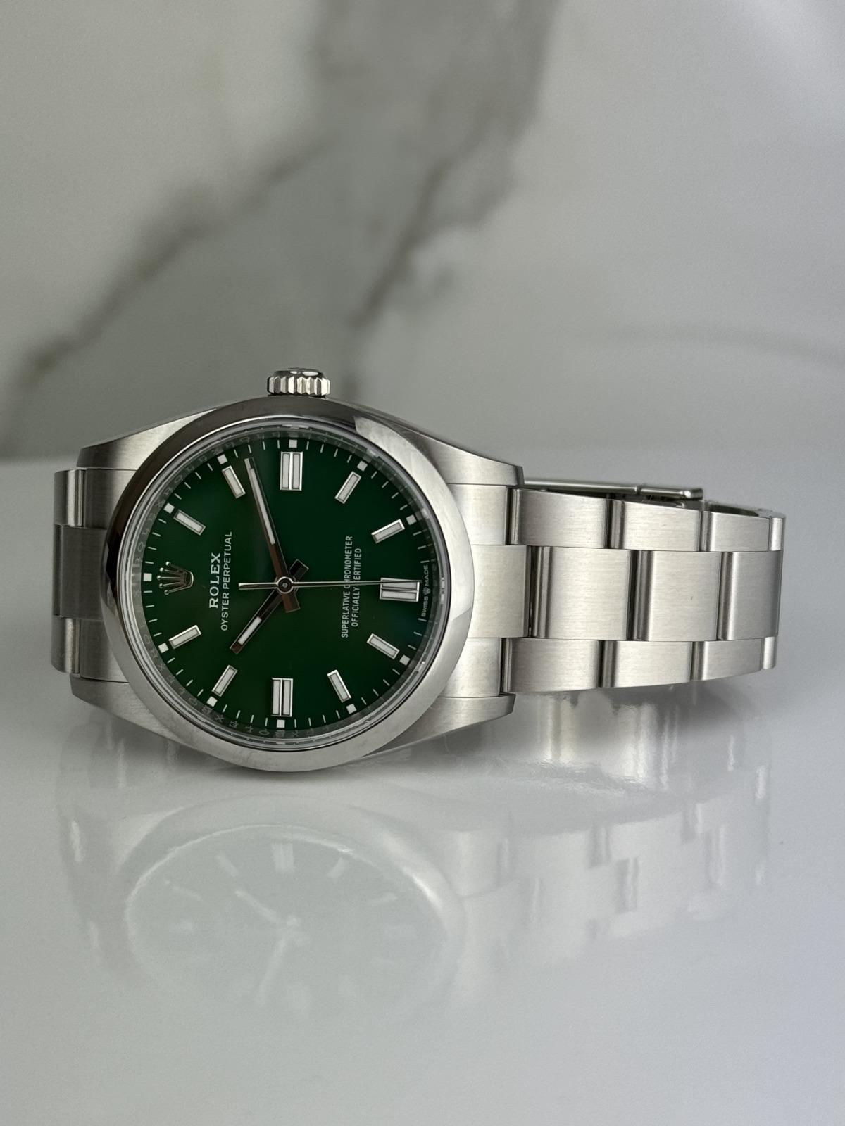 Marca Rolex Modello (Orologio) Oyster Perpetual 36 Numero di referenza 126000 Carica Automatico Materiale della cassa Acciaio Materiale cinturino Acciaio Anno di produzione 2025 Condizione nuovo Corredo No box e documenti originali Carica Automatico Materiale della cassa Acciaio Diametro 36 mm Impermeabile 10 ATM Materiale lunetta Acciaio Vetro Vetro zaffiro Quadrante Verde Numeri sul quadrante Senza numeri Cinturino Materiale cinturino Acciaio Colore cinturino Acciaio Chiusura Déployante Materiale chiusura Acciaio - COMMISSIONE D’ASTA 25%