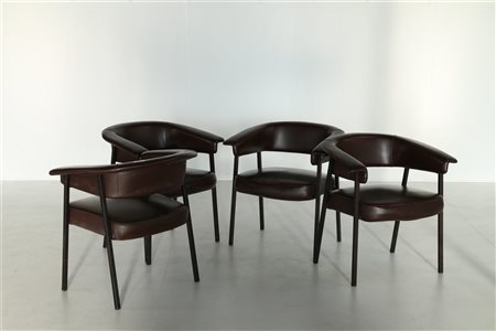 RINALDI GASTONE Per Rima, Padova. Lotto composto da n.4 poltroncine. Ferro, Skai. Cm 65,00 x 70,00 x 55,00.