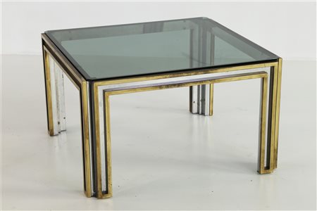 REGA ROMEO (1904 - 1968) Tavolino. Acciaio e vetro. Cm 70,00 x 70,00 x 41,00.