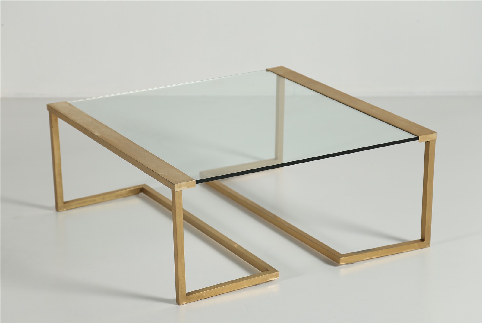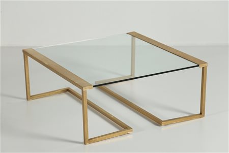 GALLOTTI E RADICE Tavolino quadrato. Metallo dorato, vetro. Cm 80,00 x 80,00 x 34,00.