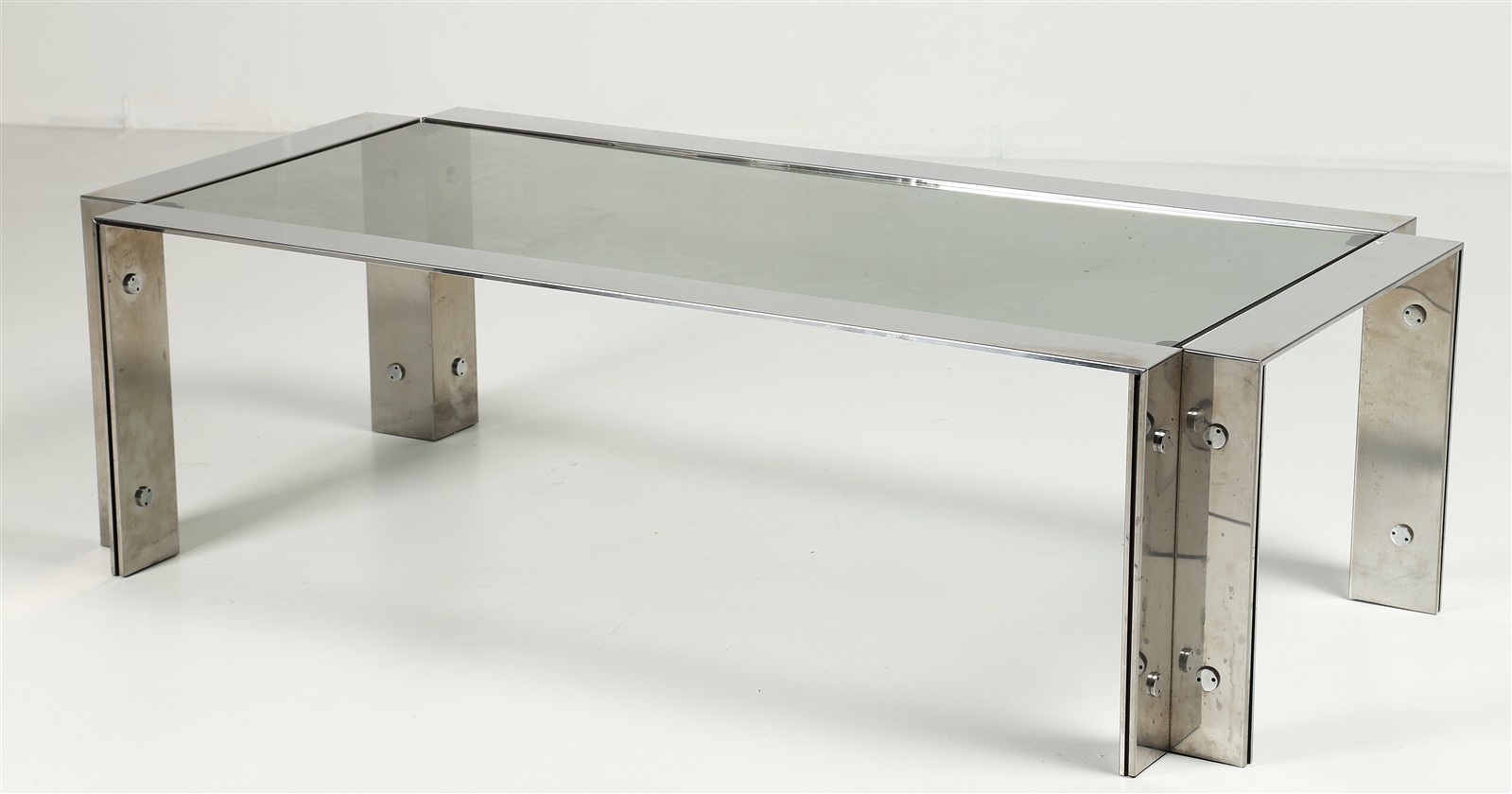 MANIFATTURA DEL XX SECOLO Tavolino. Acciaio, vetro. Cm 124,00 x 38,00 x 63,00.