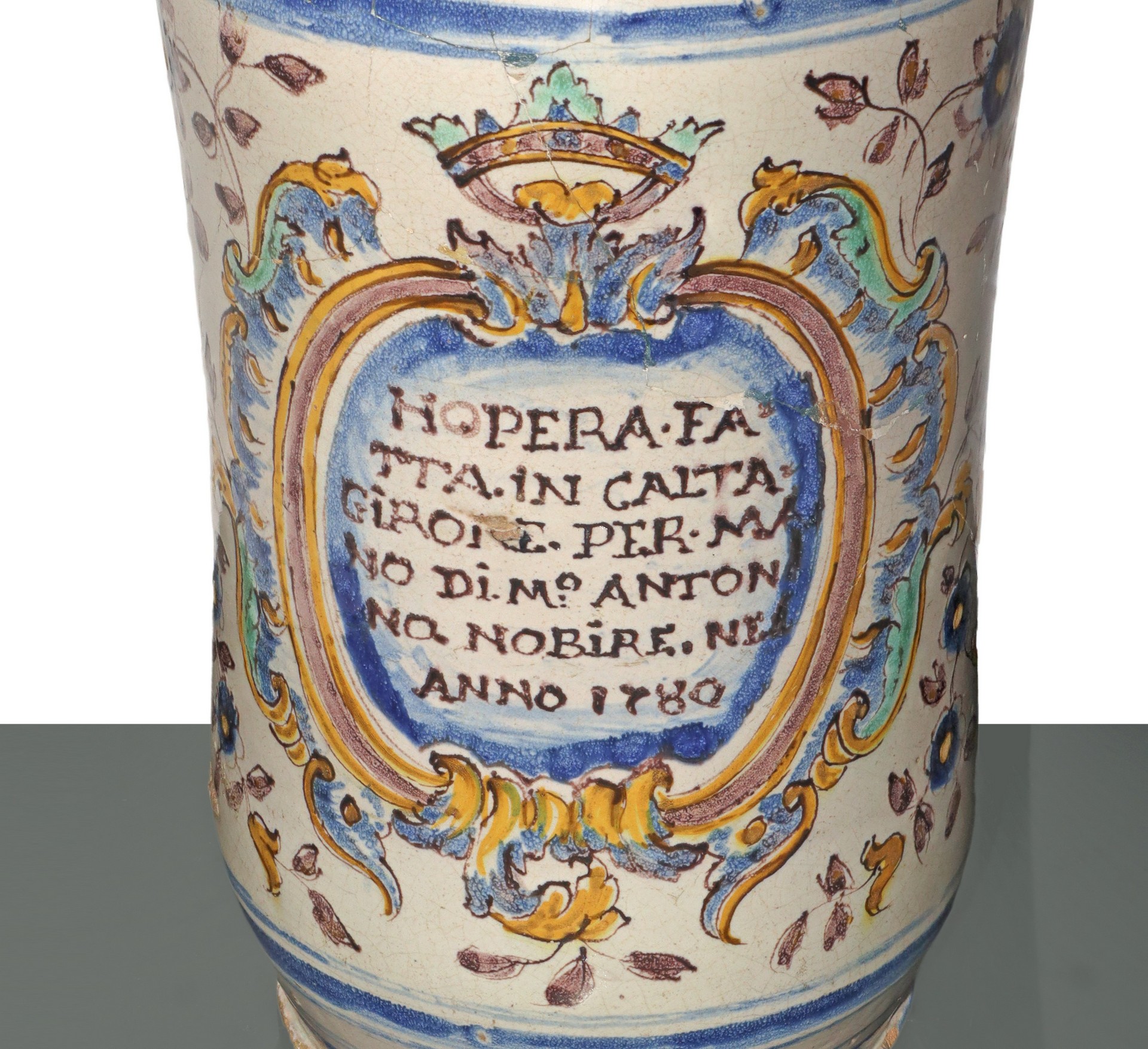 Antonio Lo Nobile - Grande cilindro in maiolica di Caltagirone decorato a motivi floreali, 1780