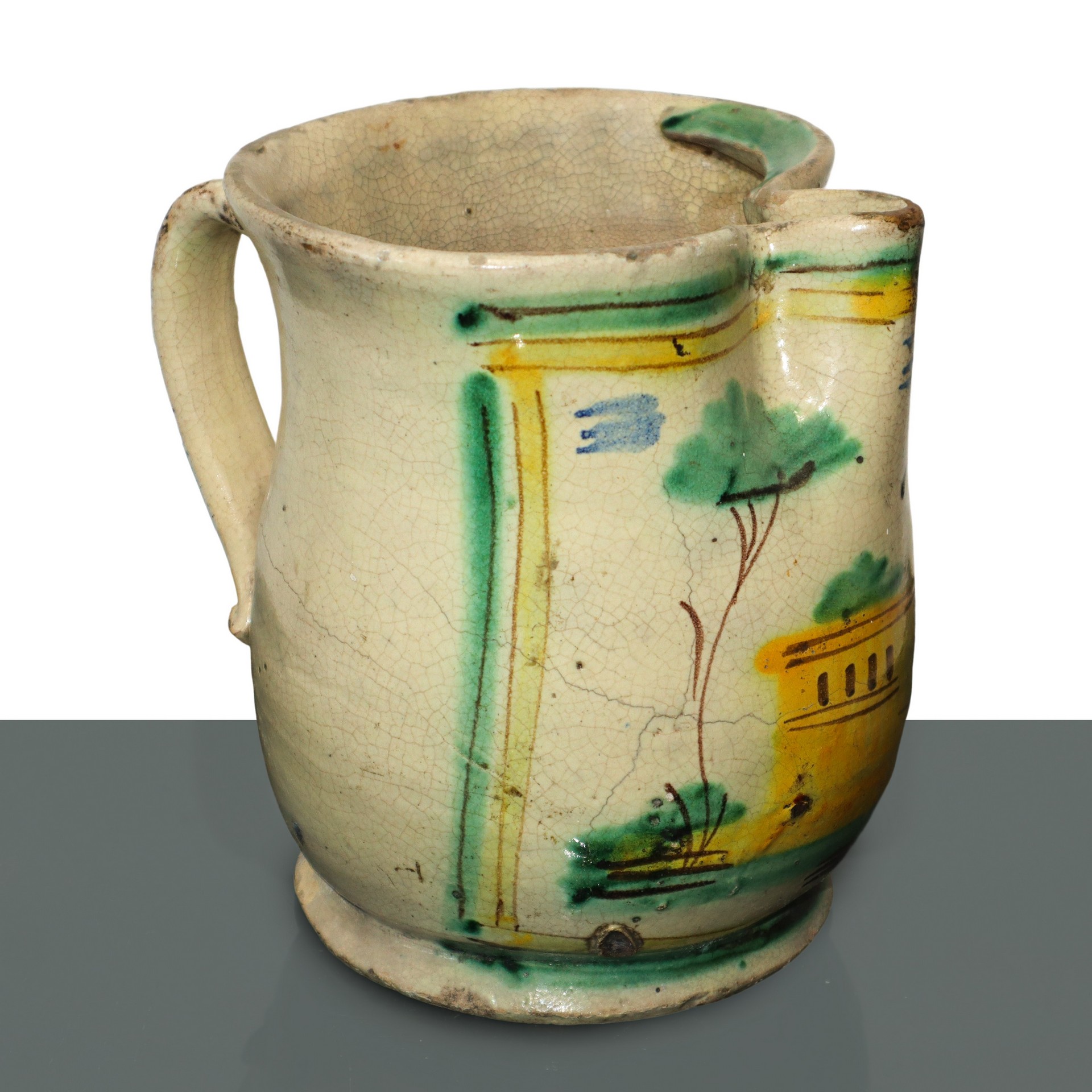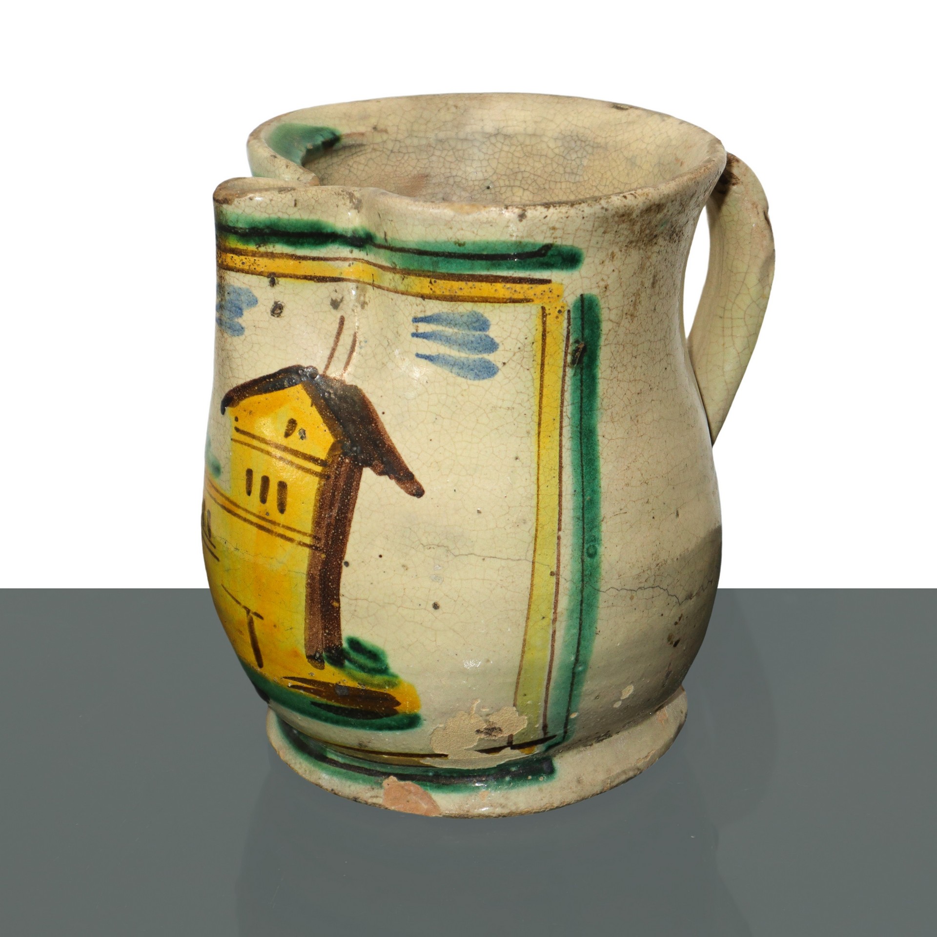 Lotto 21 | Cannata in maiolica di Caltagirone dipinta policroma con casa sul fronte, 1953
