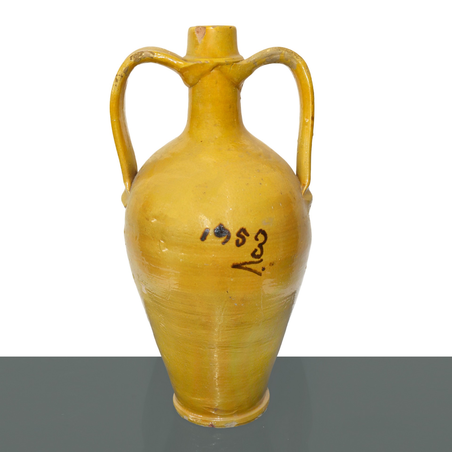 Bummulo in maiolica di Caltagirone dipinto policromo con fiori sul fronte, 1953 h cm 50