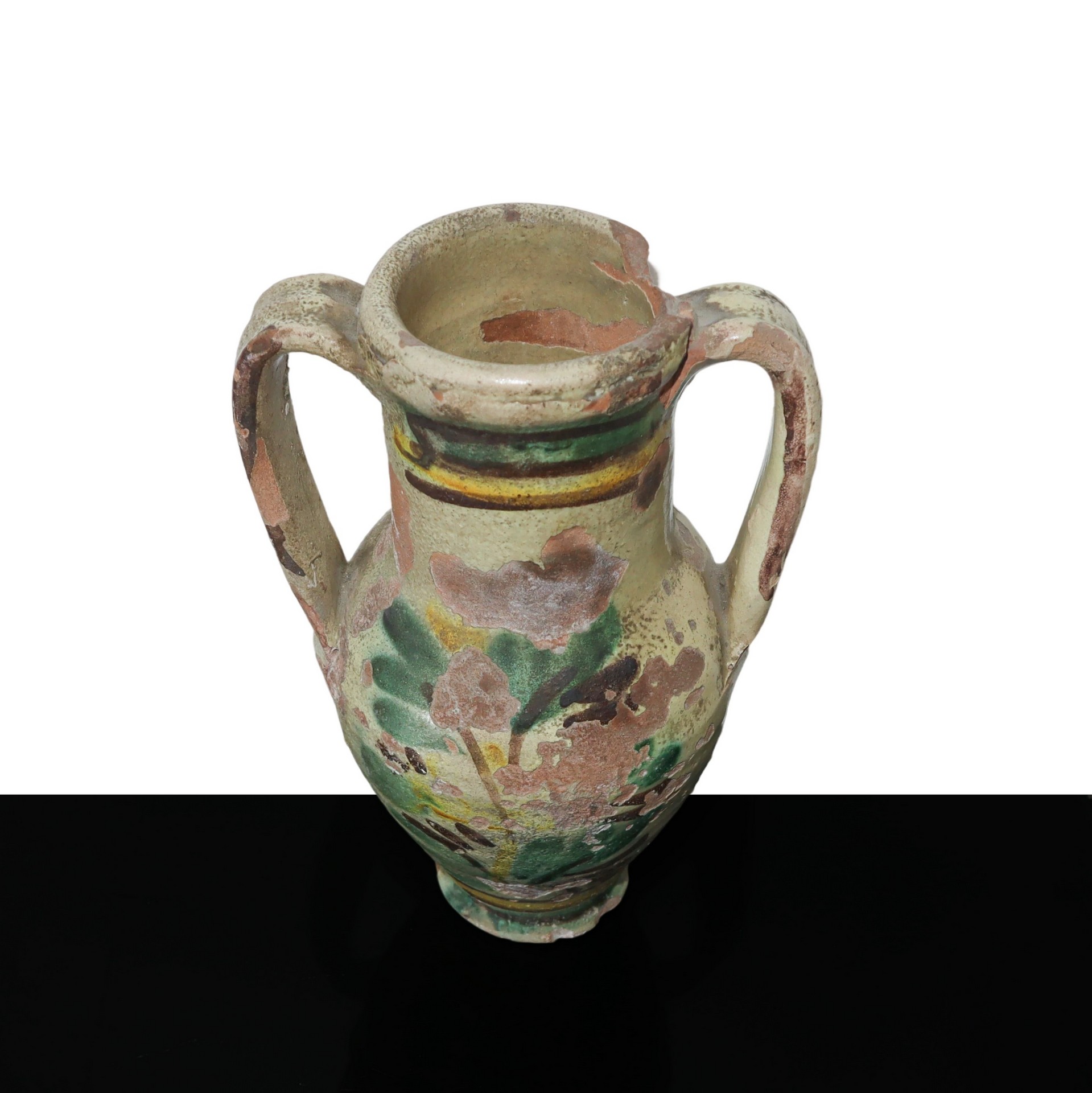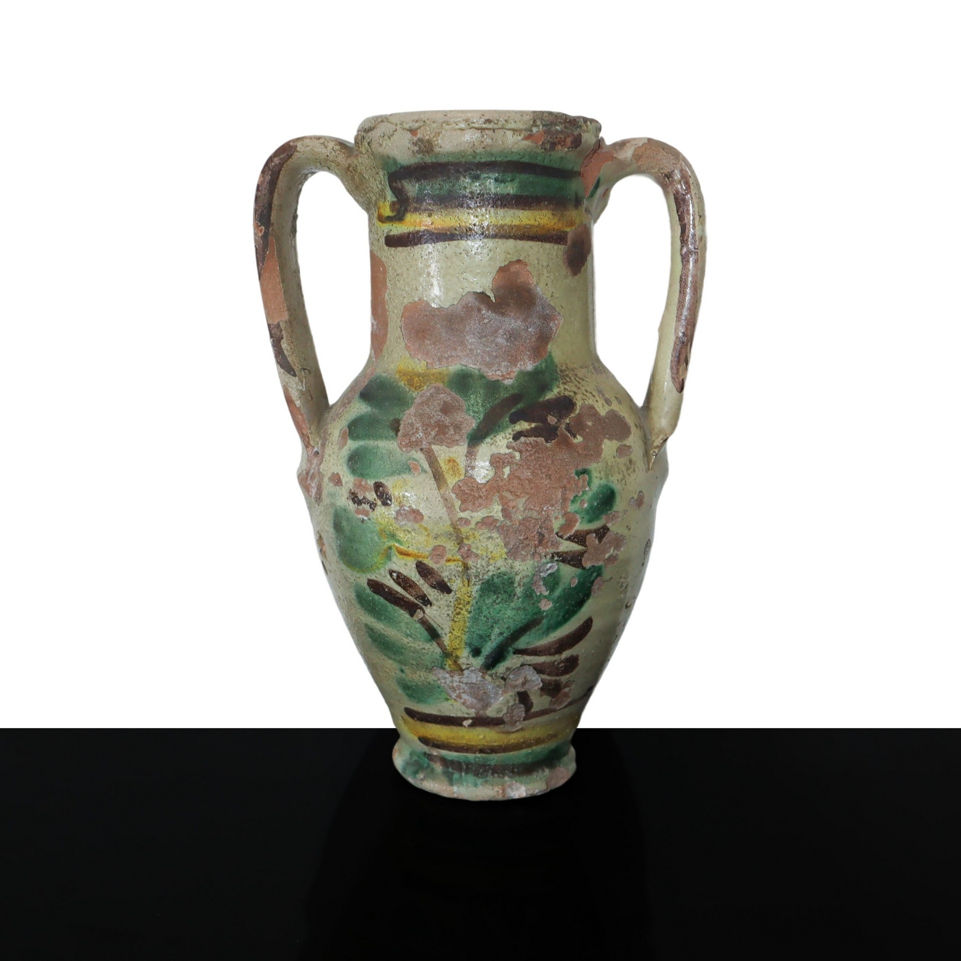 Quartara biansata policroma, fine 19° secolo 26 x 18 cm Ceramica di Caltagirone