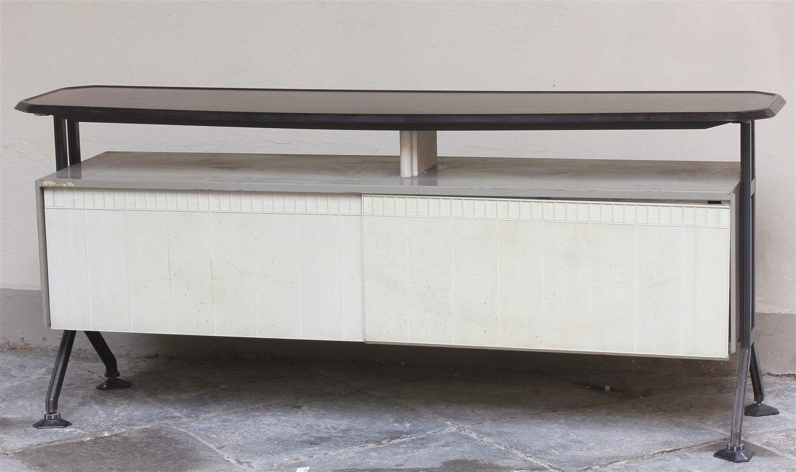 STUDIO BBPR (BANFI, BELGIOIOSO, PERESSUTTI, ROGERS) Credenza serie Arco. Metallo e pagholz. Cm 180,00 x 80,00 x 42,50. Anni '60.