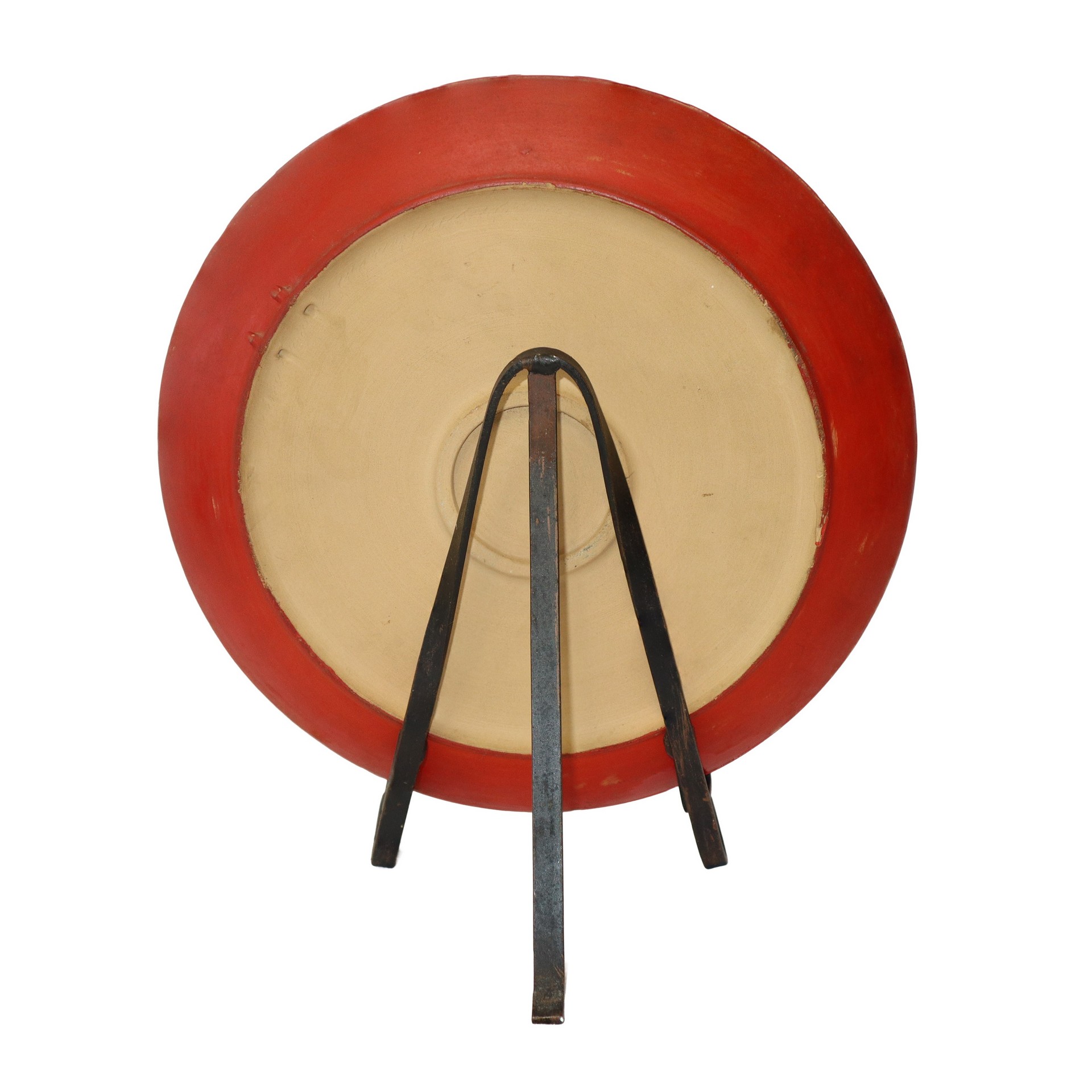 Domenico Di Mauro (Guardia Mangano 1913 - Aci S. Antonio 2016) - Piatto in ceramica con piedistallo in ferro con scena dei paladini diametro cm 30 profondita cm 3,5
