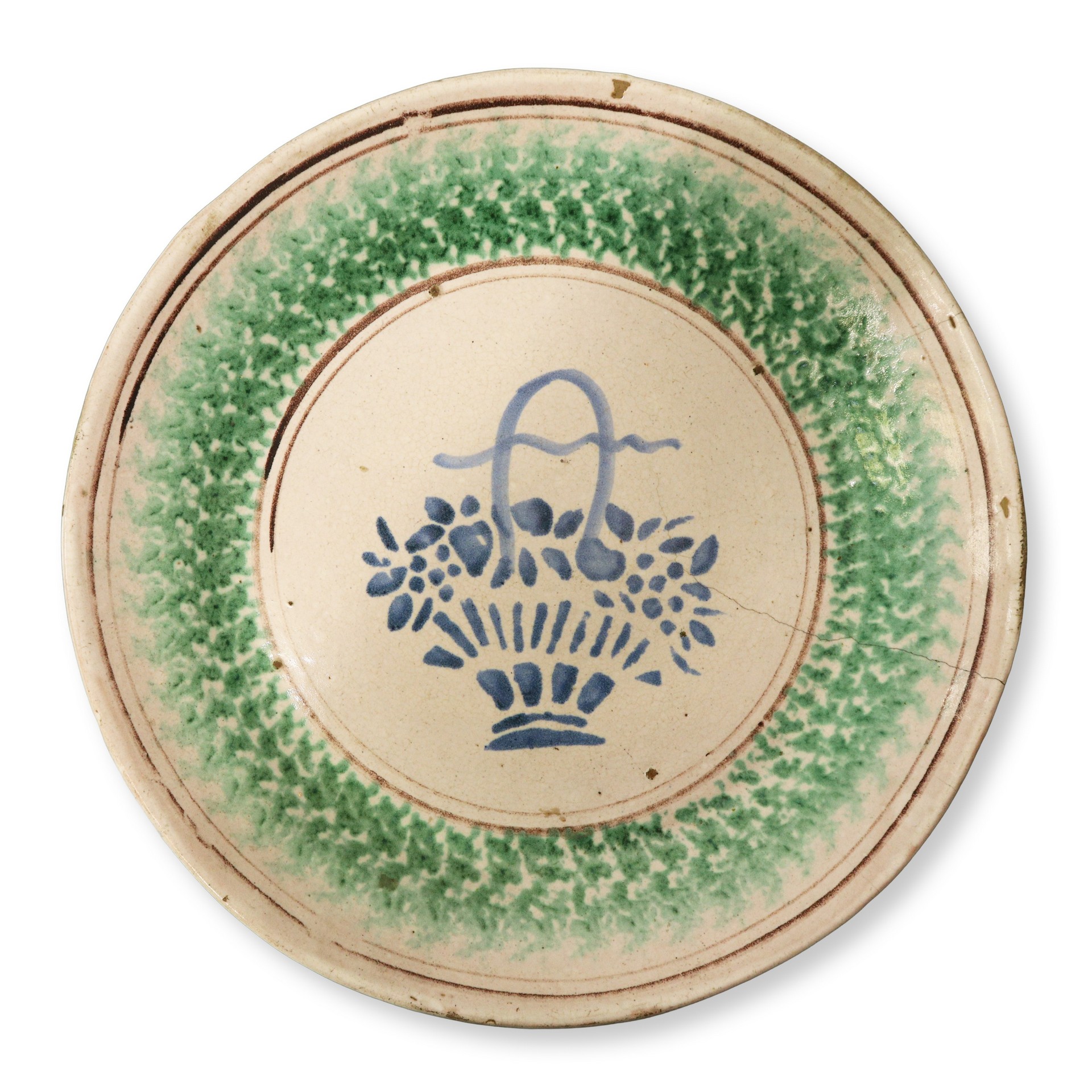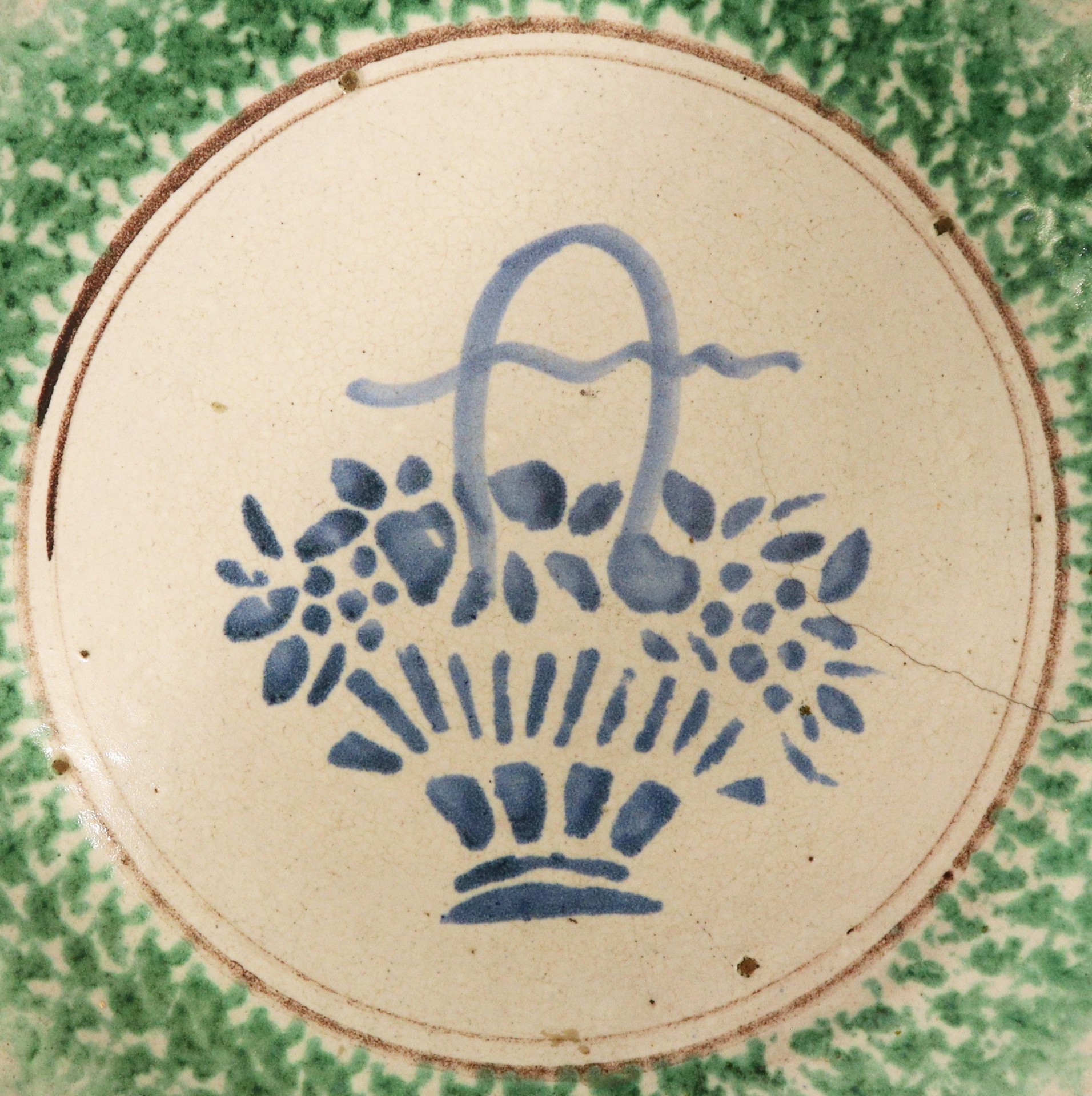 Lotto 124 | Piatto di Caltagirone spugnato verde con al centro cesto di fior, 19° / 20° secolo