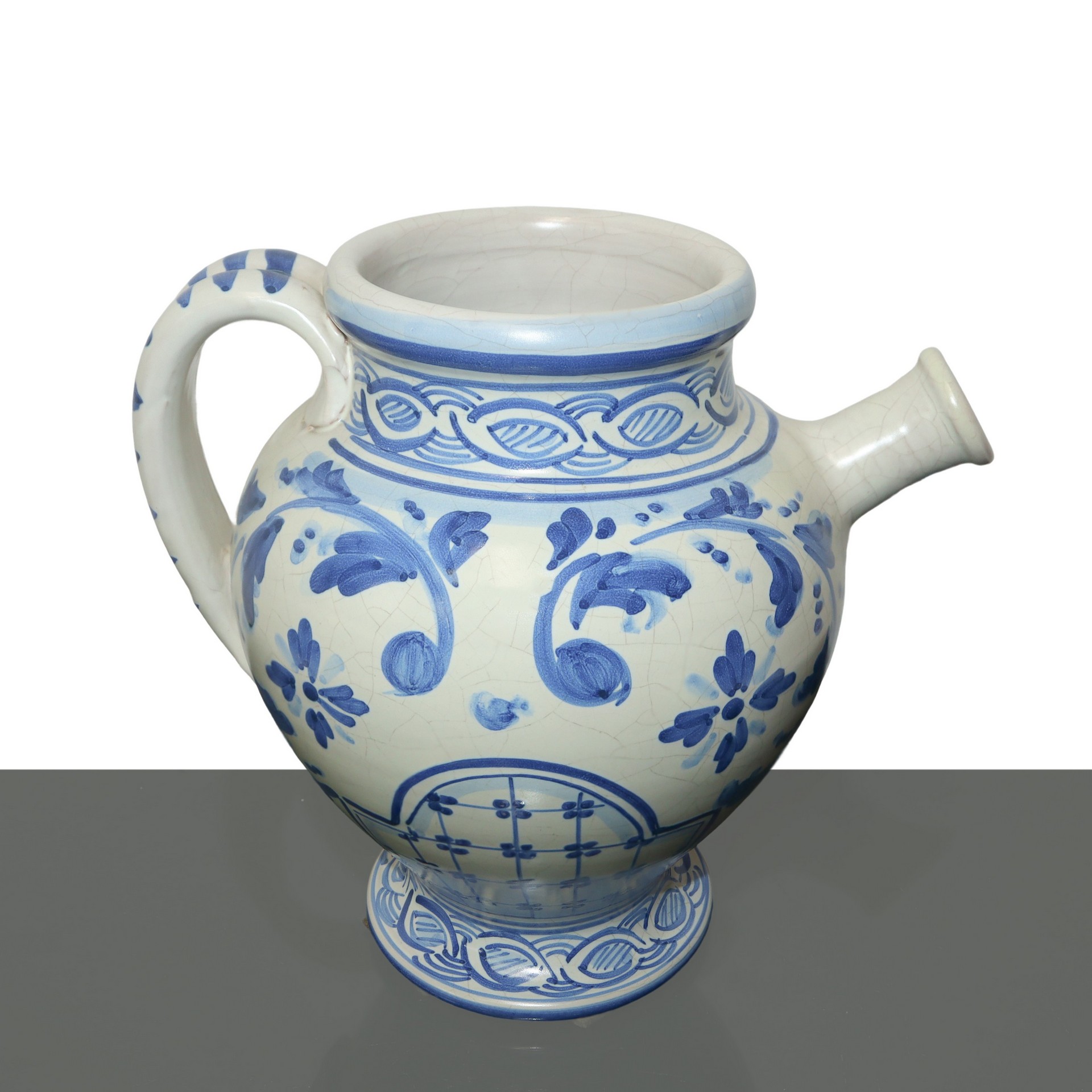 Versatoio in maiolica di Caltagirone dipinto policromo nei toni dell'azzurro, 20° secolo h cm 22,5 Marchio della manifattura alla base