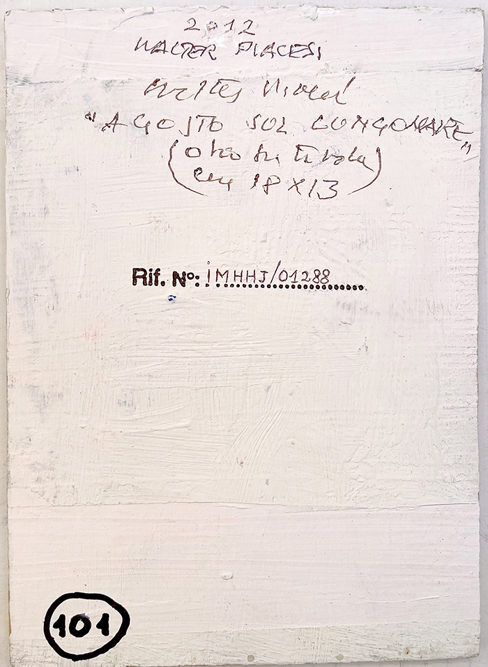 PIACESI WALTER,"Agosto sul lungomare" olio su tavola, anno 2012, opera archiviata presso l'archivio Walter Piacesi rif.IMHHJ/01288. Titolo, anno , tecnica dimensioni e numero di archivio a retro. Autentica dell'artista su fotografia, 18x13 cm