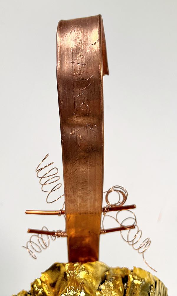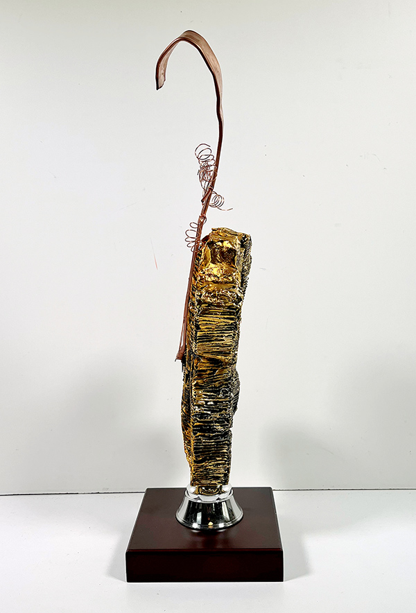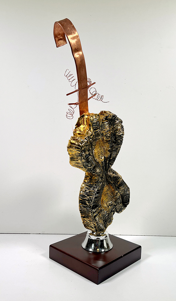 M'HORO', Multiplo: scultura in resina epossidica placcata in argento. L’artista ha realizzato e innestato, su ciascun violino, il manico in rame, le corde e il ponticello. Ogni esemplare è registrato nell’archivio ufficiale degli “original multiples”, Firma e numerazione incisa sul manico, Numerata a mano in alto e sotto la basa, Tiratura 99 numeri arabi + 25 numeri romani + 15 P.d’A. Opera registrata presso l’archivio delle opere multiple di M’HORO’ come riportato sul certificato di autenticità. h43x16x15 cm