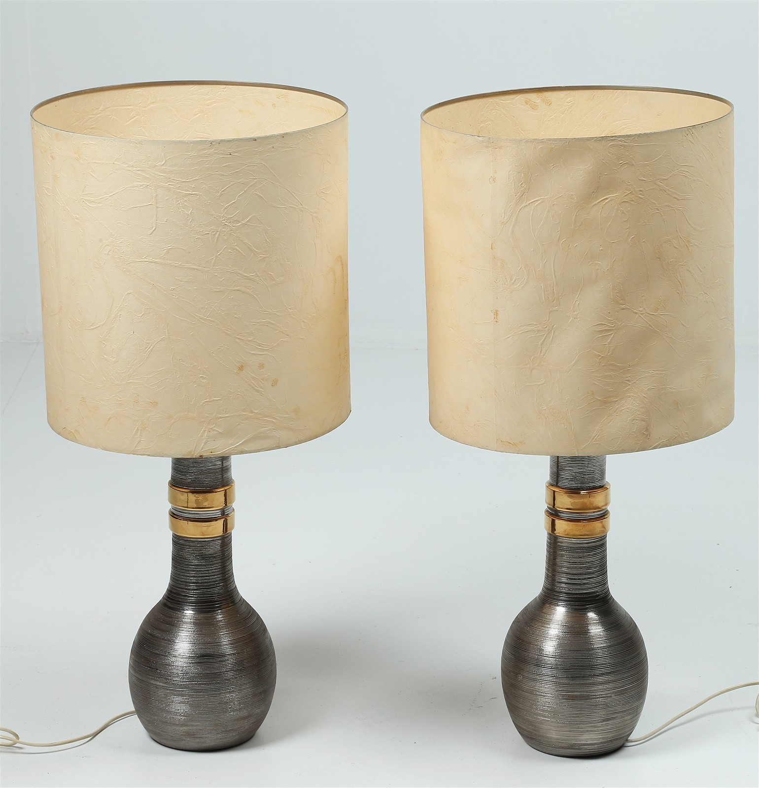 MANIFATTURA DEL XX SECOLO Lotto composto da n.2 lampade con paralume. Ceramica. Cm 18,00 x 50,00. Le dimensioni indicate sono senza il paralume.