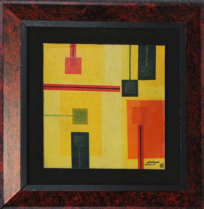 LUCIANO MALEGARI, 1999, Collage su tavola, Dim. 35x35, Al fronte: firmato in basso a destra, Al verso: certificato di autenticità, Opera con cornice