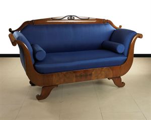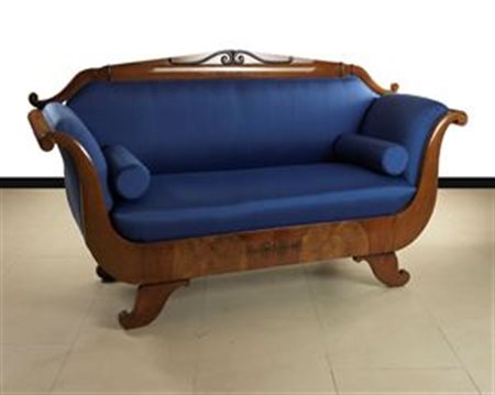 DIVANO Divano in radica di tuia con intarsi, Austria epoca Biedermeier fine...