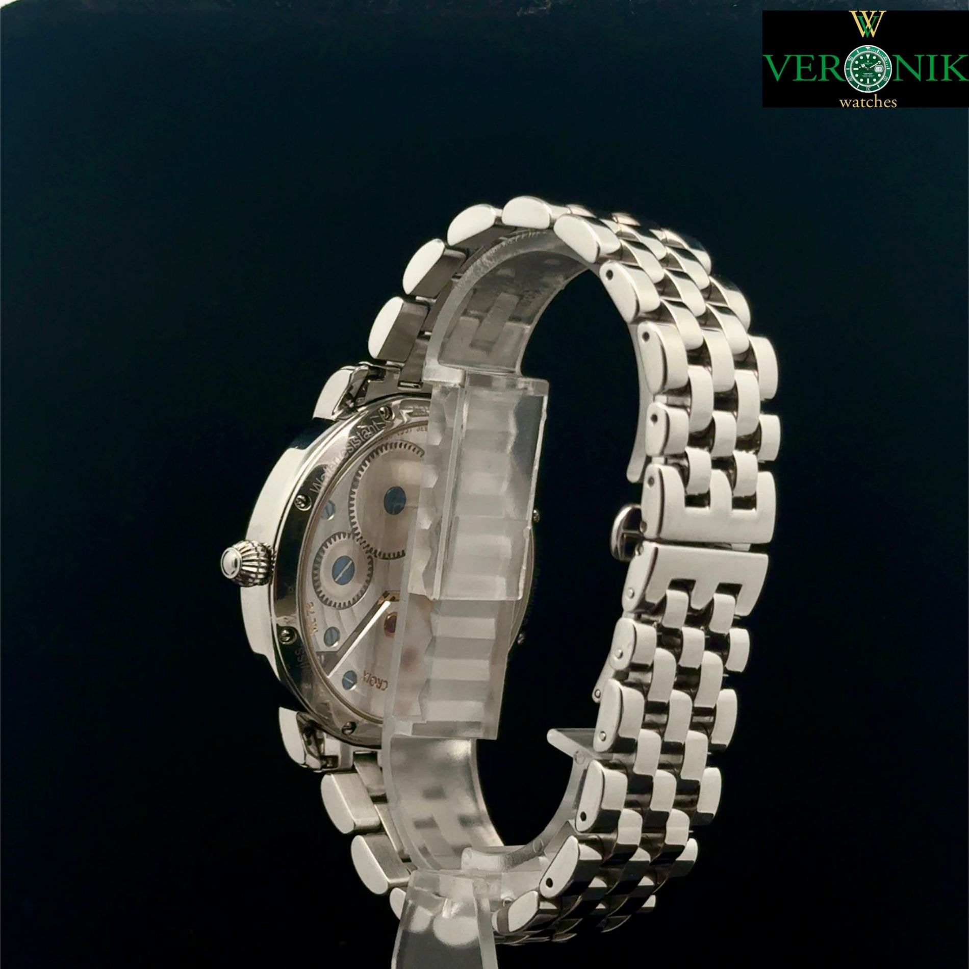 Marca Maurice Lacroix Modello (Orologio) Masterpiece Numero di referenza 76840 Carica Manuale Materiale della cassa Acciaio Materiale cinturino acciaio Anno di produzione Non disponibile Condizione Usato (Ottimo) L'articolo presenta segni di usura lievi, come ad esempio graffi leggeri, ma non percepibili al tatto. Corredo Con scatola originale, senza documenti originali Materiale della cassa Acciaio Diametro 43 mm Materiale lunetta Acciaio Vetro Vetro zaffiro Quadrante Argento - COMMISSIONE D’ASTA 25%