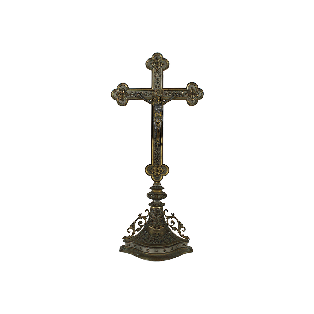 CROCIFISSO con croce e base in metallo argentato e dorato maestranze siciliane fine XIX inizio XX secolo h cm 42 x 20 x 10