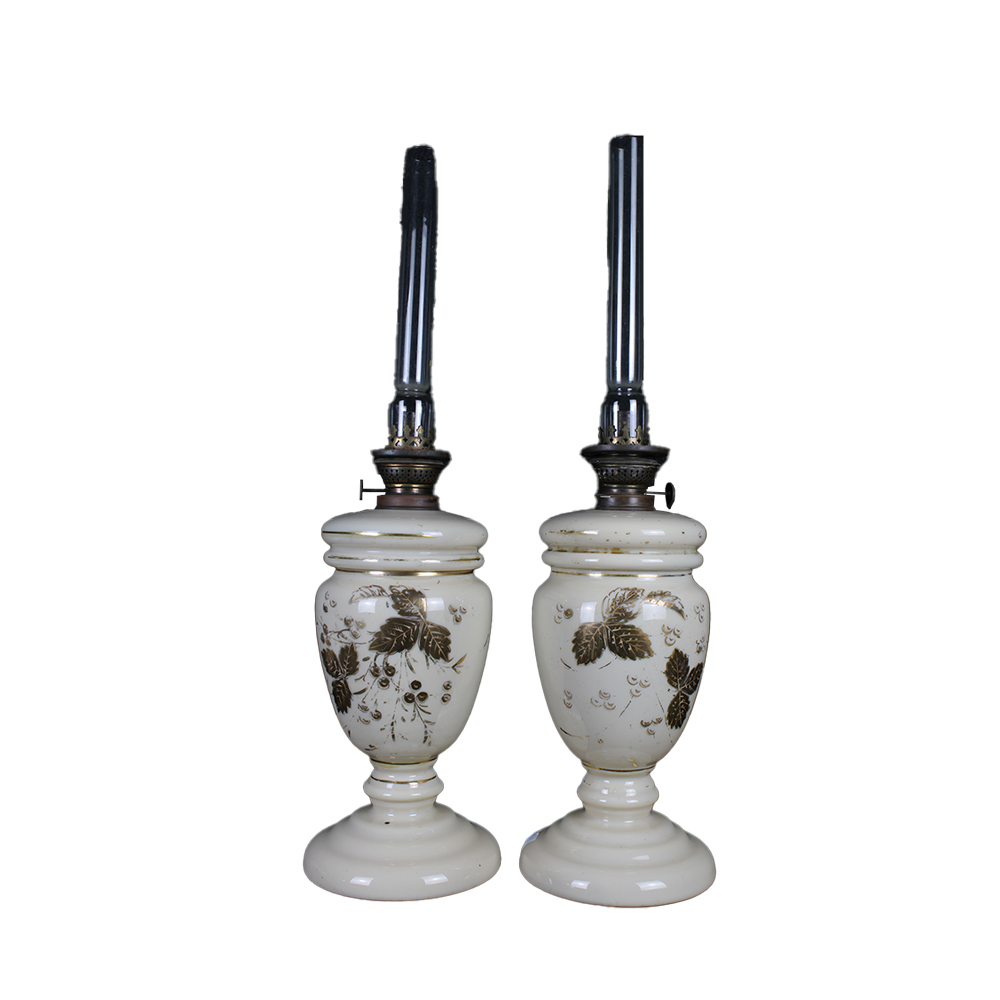 COPPIA LUMI in opaline decorati a motivi floreali in oro zecchino, bocce mancanti Sicilia XIX secolo h cm 59,5 x Ø 15,5