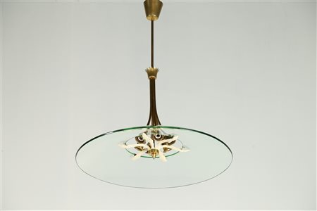 MANIFATTURA ITALIANA DEL XX SECOLO Lampadario. Ottone e vetro. Cm 62,00 x 80,00.