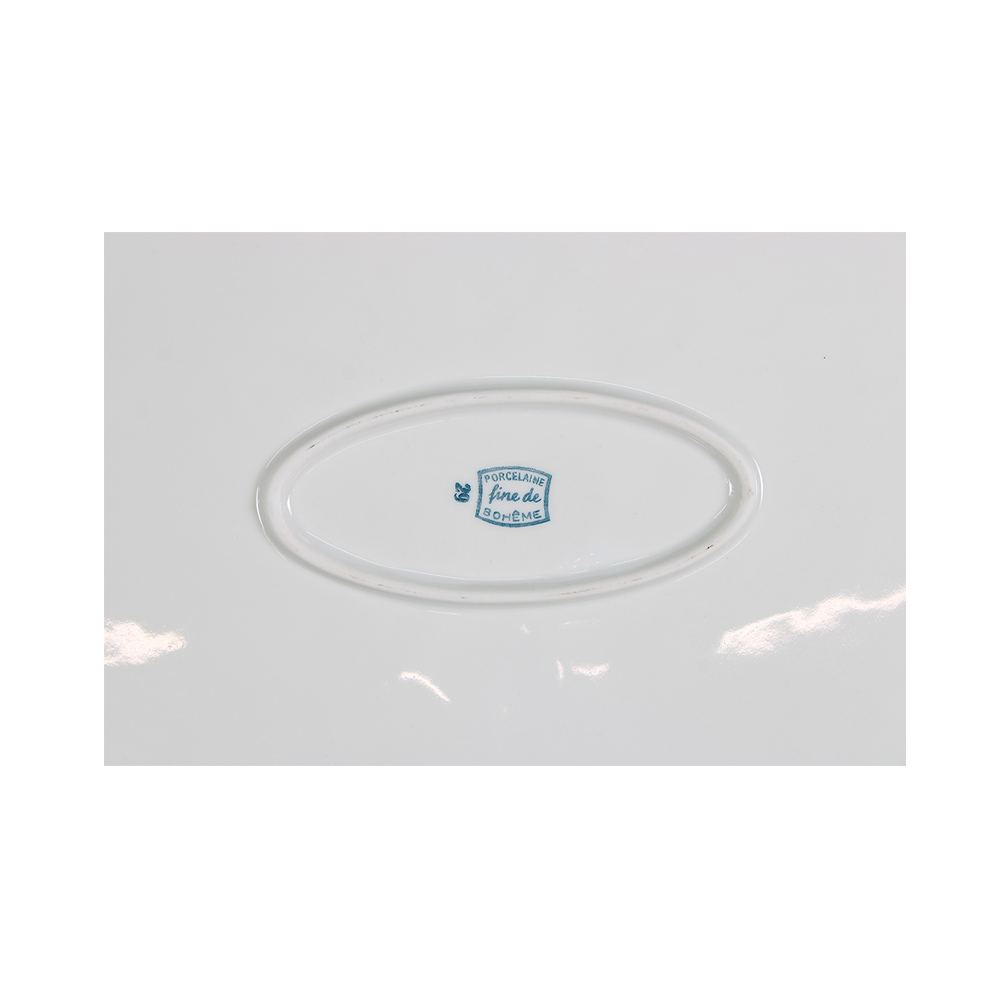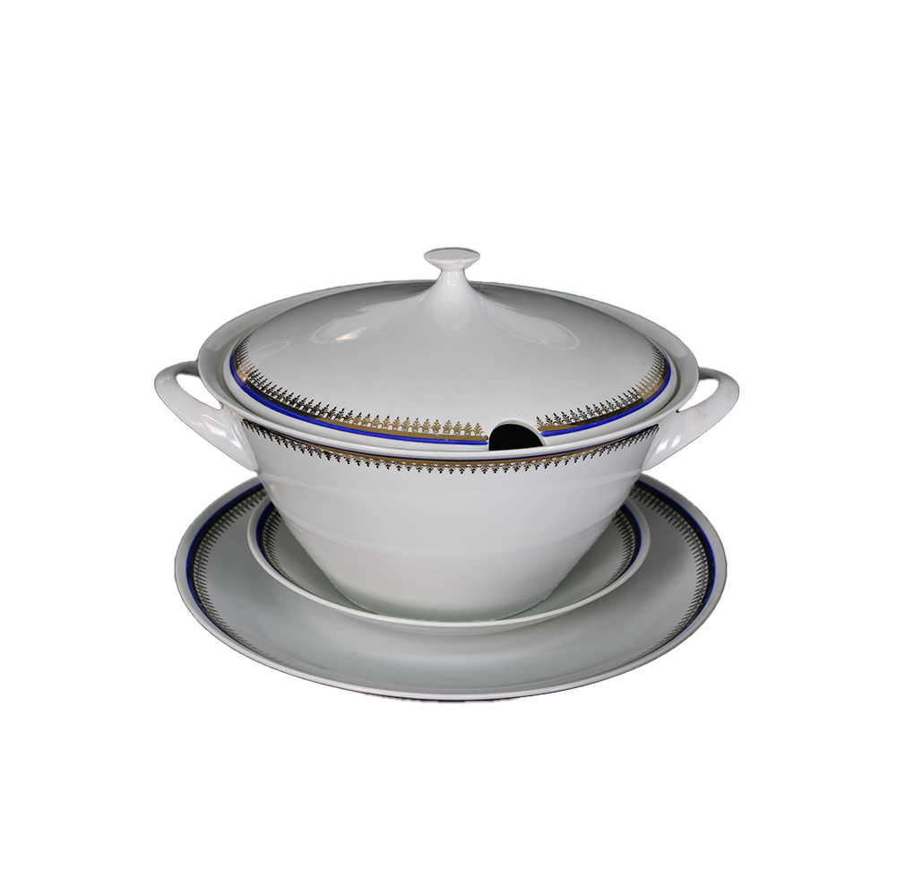 SERVIZIO DI PIATTI in porcellana bianco con perfilo blu e oro,71 pezzi Cecoslovacchia Claudia XX secolo misure varie