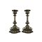 COPPIA CANDELABRI MONOCERA in metallo argentato e dorato maestranze siciliane primi 900 h cm 22 x 11,5