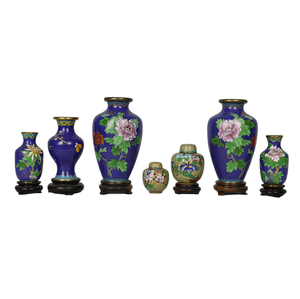 LOTTO COMPOSTO DA 7 piccoli vasi in cloisonne maestranze orientali XX secolo misure varie