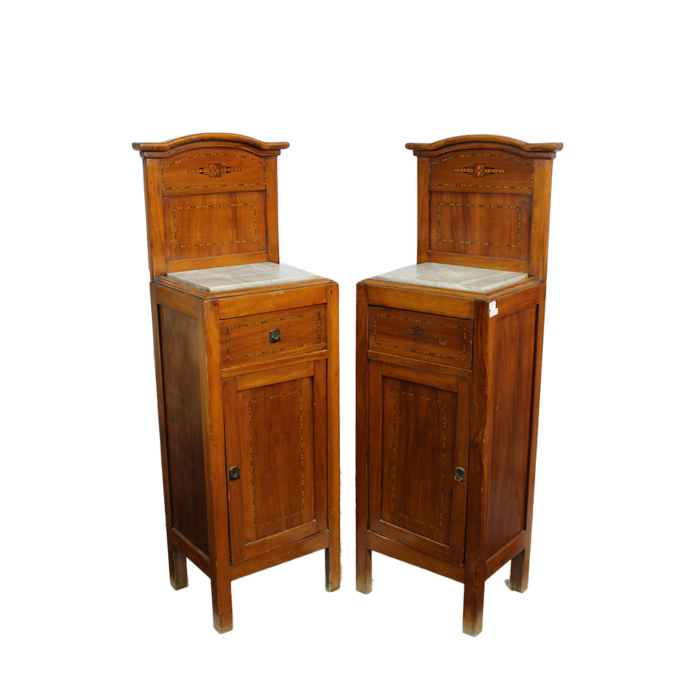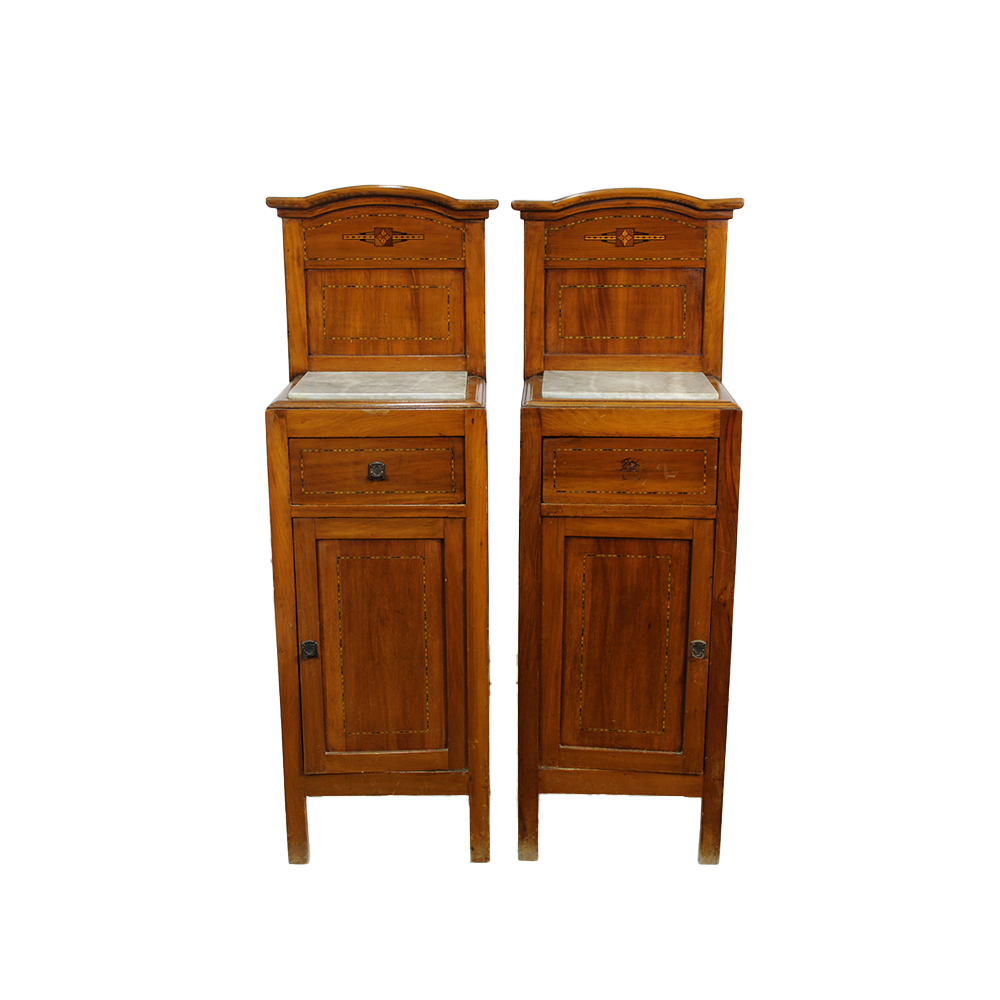 COPPIA COMODINI in legno di noce con tarsie in varie essenze con sportello parte inferiore con alzata Sicilia fine 800 h cm 118 x 41 x 30