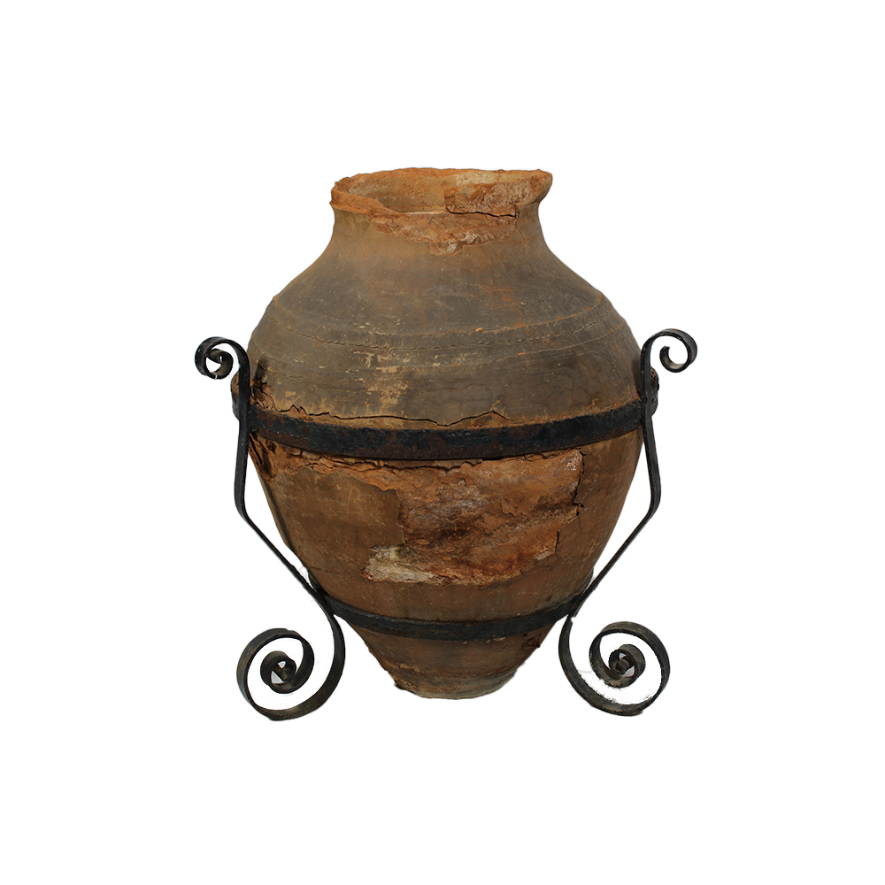 GIARA in terracotta con supporto in ferro Sicilia XIX secolo giara h cm 82 x 60 - base cm Ø 70
