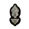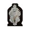 FONTANA in maiolica policroma dipinta a motivi floreali con supporto in legno di noce scolpito maestranze venete XIX/XX secolo h cm 81 x 39