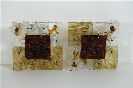 VENINI Lotto composto da n.2 Appliques. Acciaio e vetro. Cm 30,00 x 30,00 x...