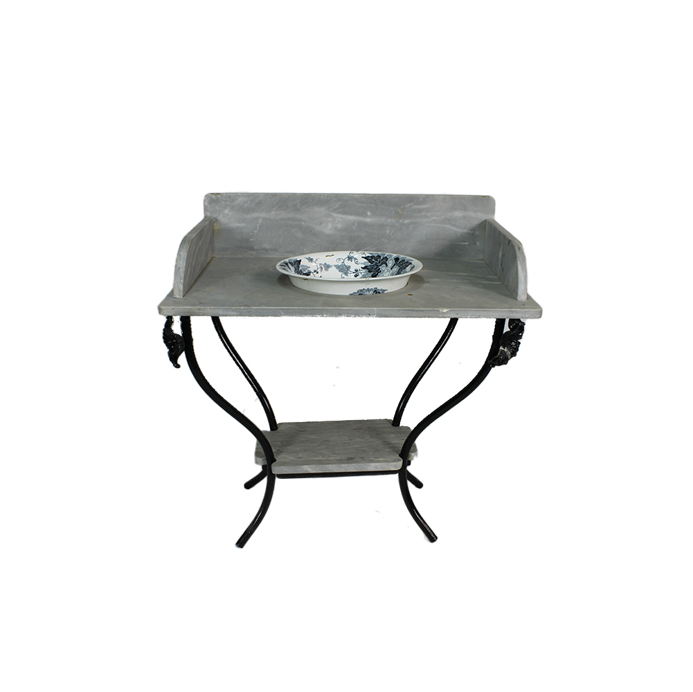 TOLETTA LIBERTY con base in ferro e marmo grigio di Billiemi e bacile in porcellana (restaurato) Sicilia primi 900 h cm 83 x 81 x 50