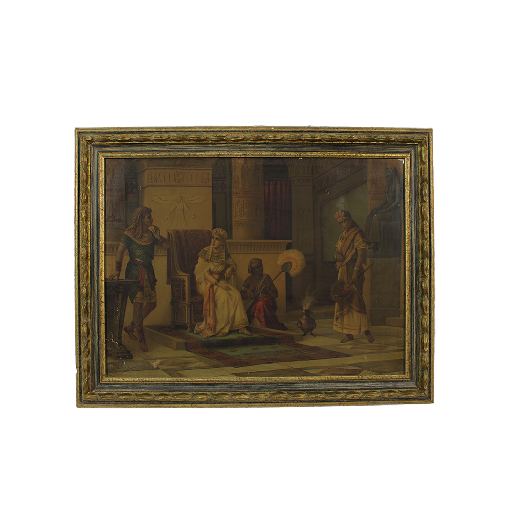 STAMPA SU CARTA RIPORTATA SU TELA raffigurante scene d'interno dentro cornice in legno laccato e dorato primi 900 h cm 53 x 73 - cornice h cm 68,5 x 88,5