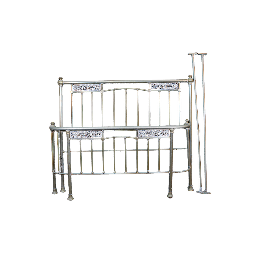 LETTO LIBERTY in alpacca (rame bianco) con testata a ringhiera e pediera a balcone Sicilia primi 900 h cm 135 x 175 x 210