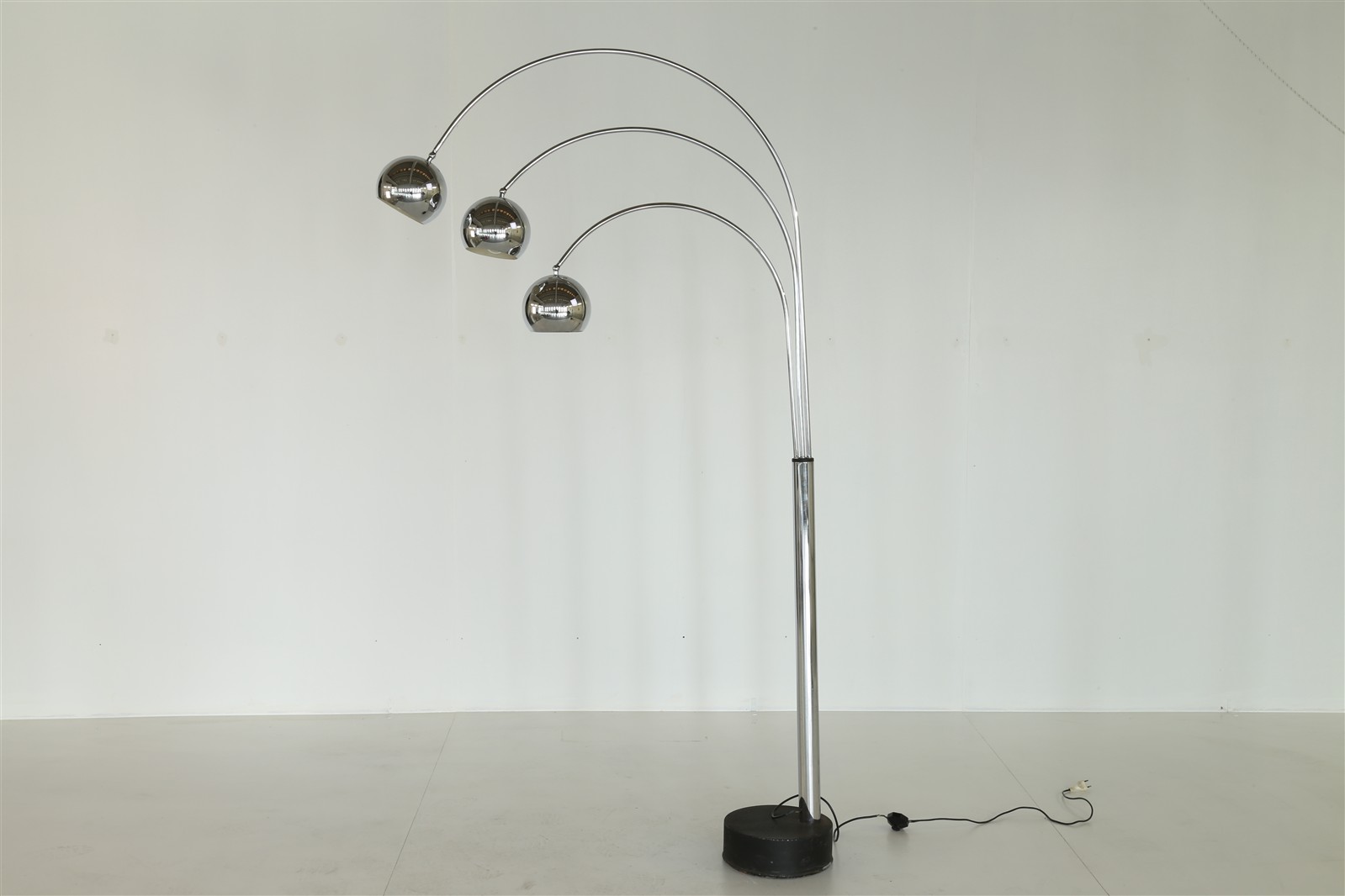 REGGIANI Arco a tre luci. Acciaio cromato. Cm 110,00 x 220,00.