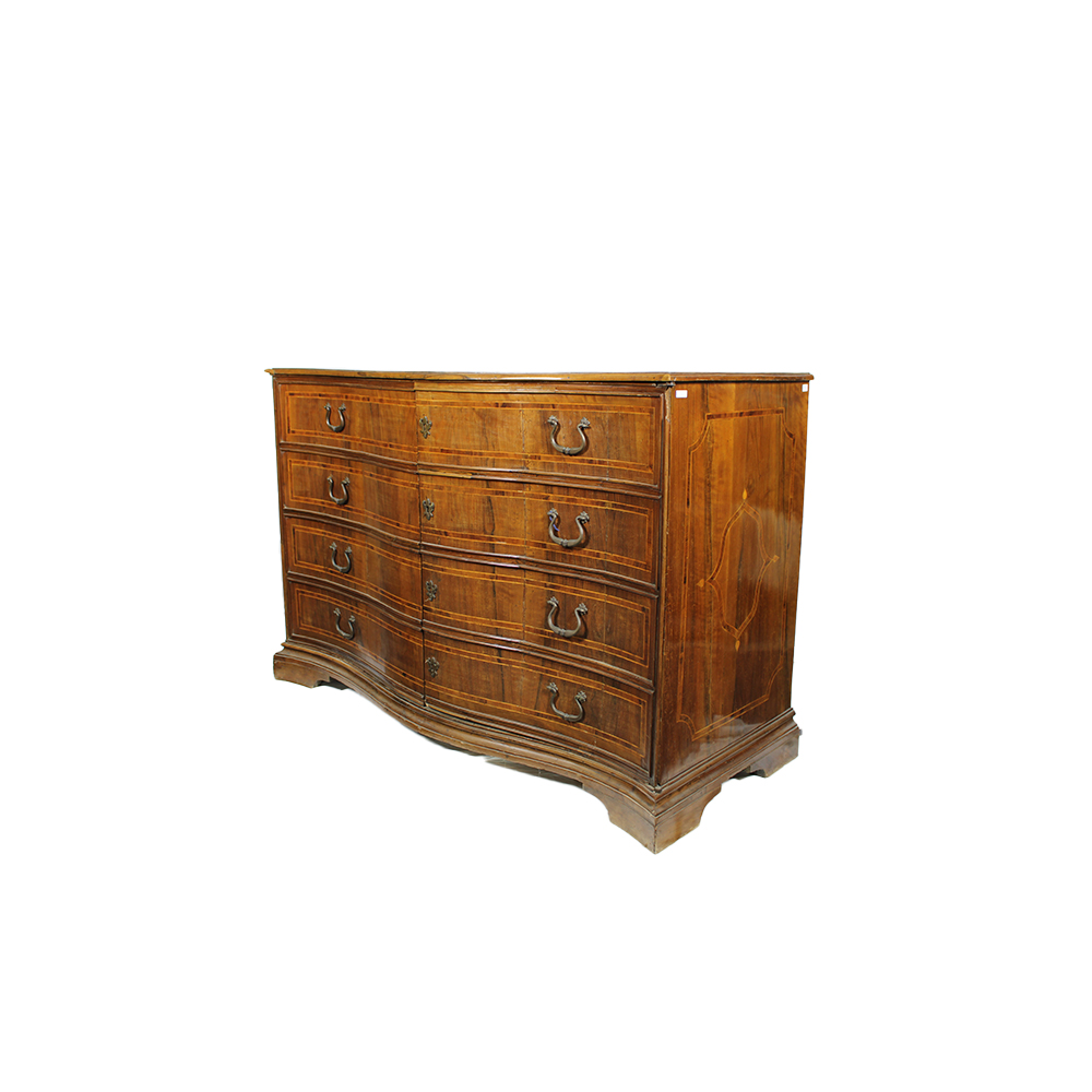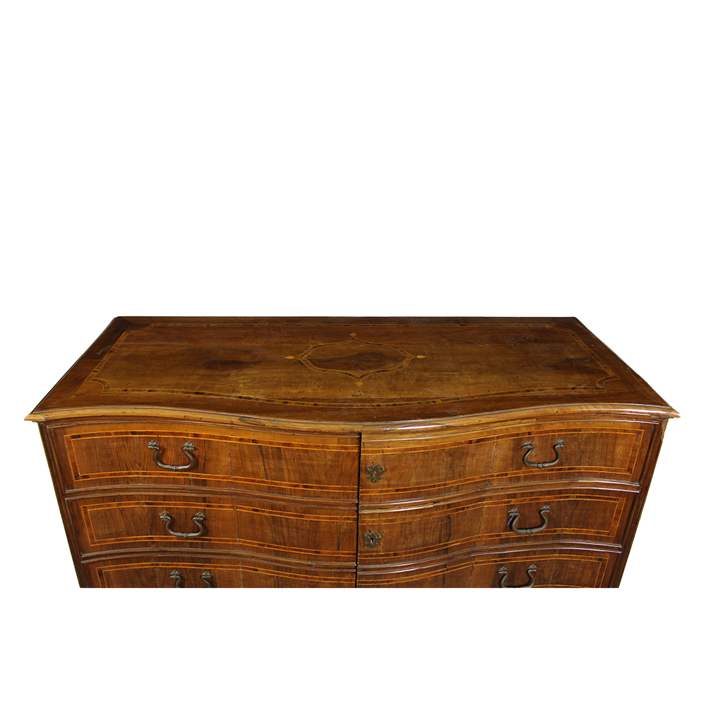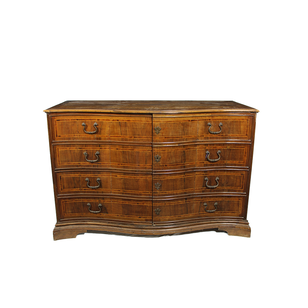 IMPORTANTE CREDENZA in legno di noce con perfili in bosso a due sportelli, serramenti in bronzo manifattura veneta XVIII secolo h cm 105 x 155 x 64