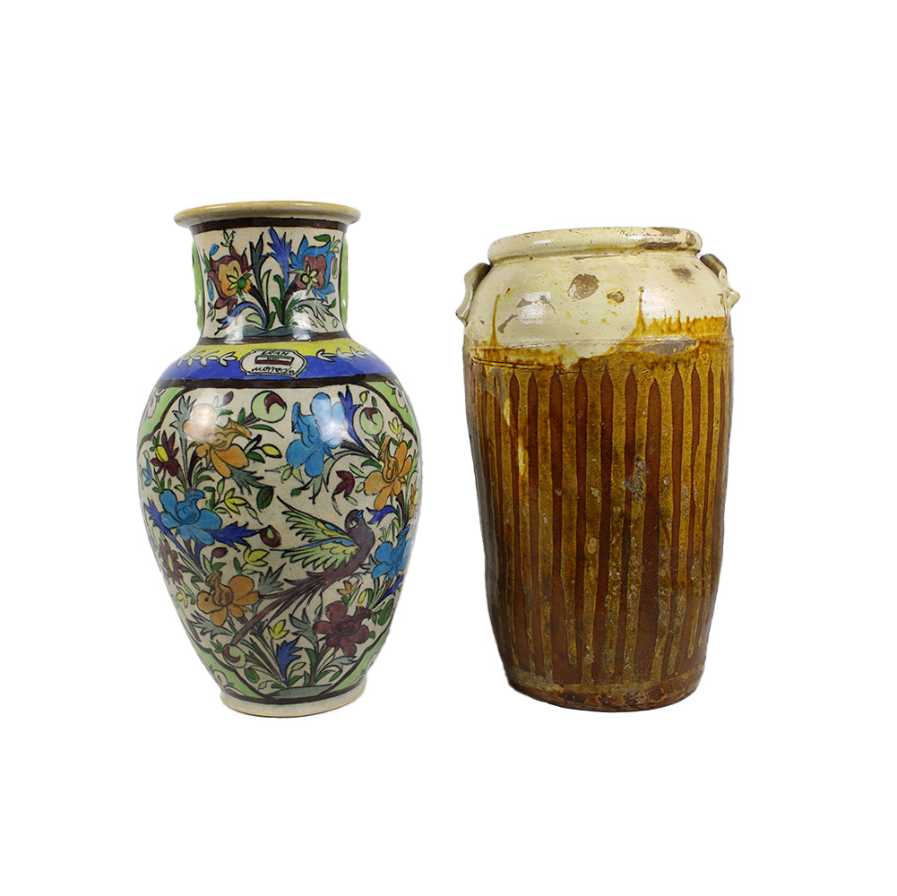 LOTTO COMPOSTO DA 1 vaso in ceramica popolare e 1 vaso in ceramica Iraniana XIX/XX secolo h cm 41 x 20- h cm 39 x 22