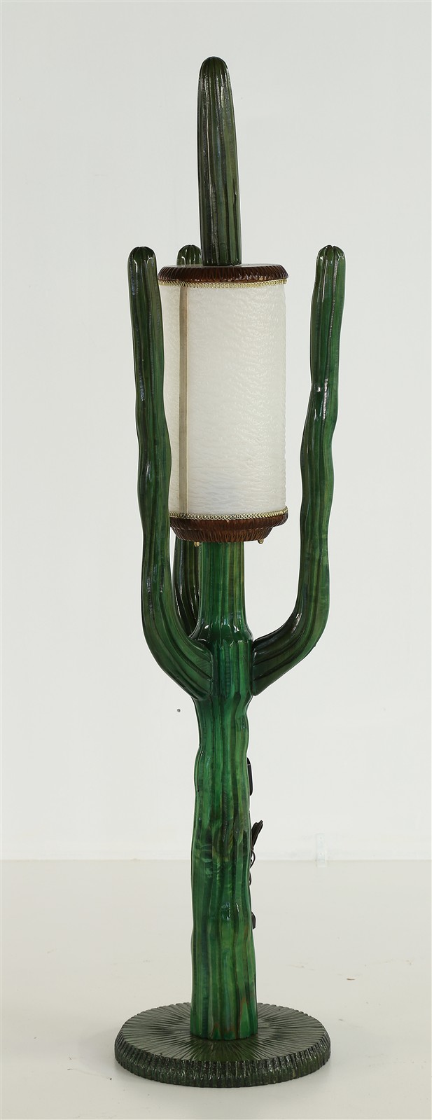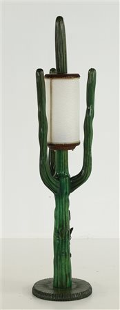 MANIFATTURA ITALIANA DEL XX SECOLO Lampada a forma di cactus. Legno,...