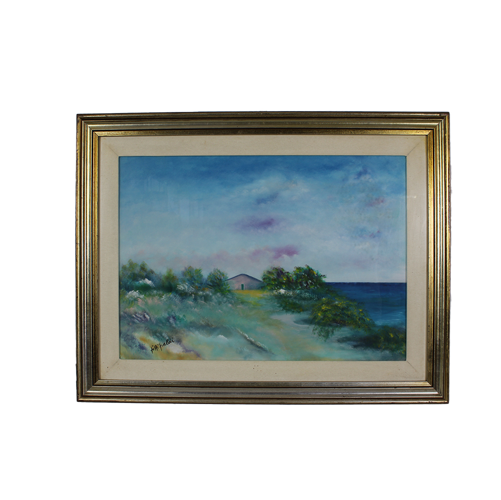 E. FITTIPALDI olio su tela raffigurante paesaggio con casa, firma in basso a sx, dentro cornice in legno dorato Italia XX secolo h cm 50 x 70 - cornice h cm 70 x 90
