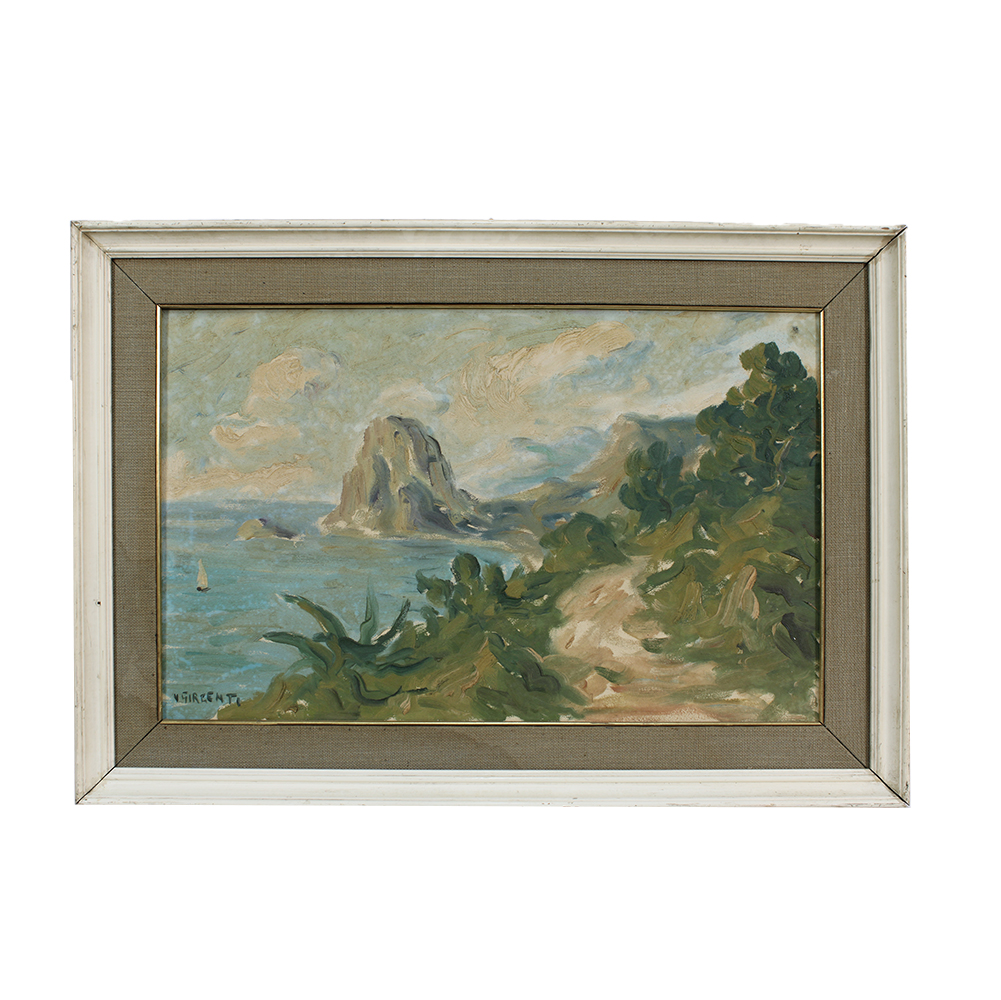 OLIO SU TELA raffigurante paesaggio costiero a firma V. Girgenti dentro cornice XX secolo h cm 50 x 80 - cornice h cm 70 x 100