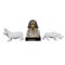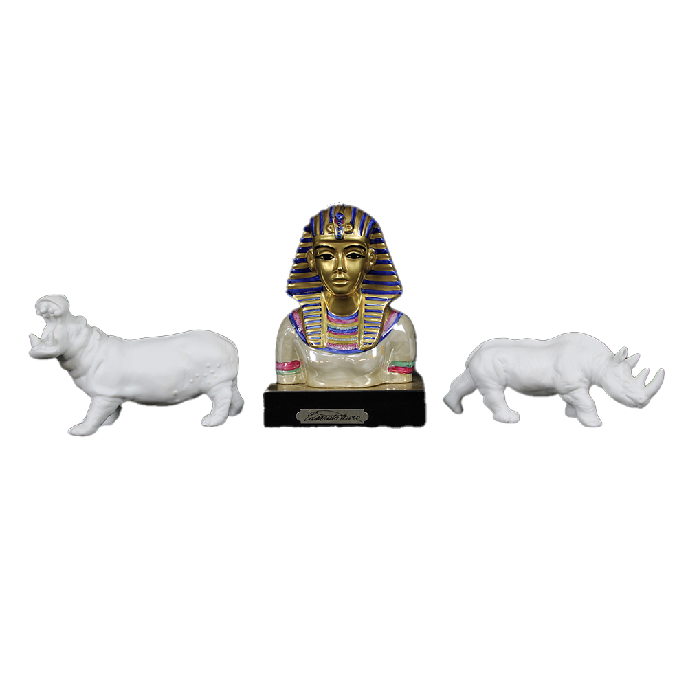 LOTTO COMPOSTO DA 2 sculture in biscuit raffigurante animali e 1 scultura in porcellana raffigurante busto di faraone XX secolo h cm 16 x 11 x 7 - h cm 6 x 16 - h 6 x 18