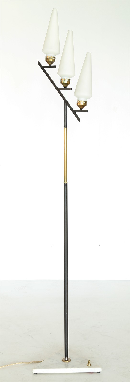 MANIFATTURA ITALIANA DEL XX SECOLO Lampada. Marmo, metallo verniciato nero, ottone, vetro. Cm 35,00 x 180,00.