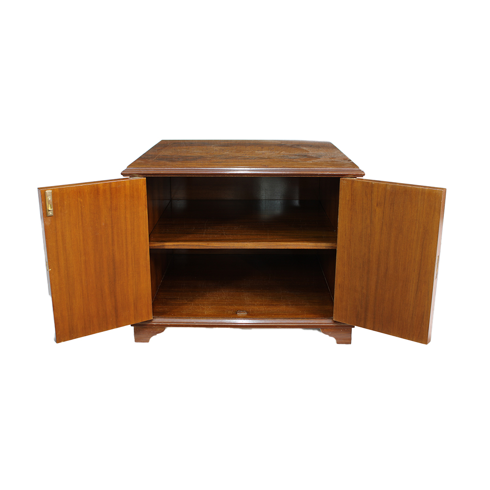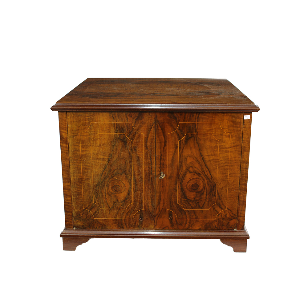 CURIOSA CASSAPANCA in radica di noce perfilata in bosso a 2 sportelli Sicilia primi 900 h cm 57 x 73 x 73