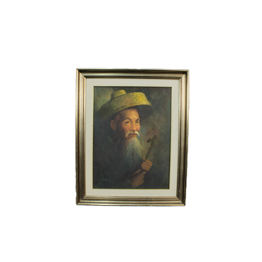 OLIO SU TELA raffigurante anziano orientale, firma in basso a sx R. Chan XX secolo h cm 60 x 46 - cornice h cm 83 x 68