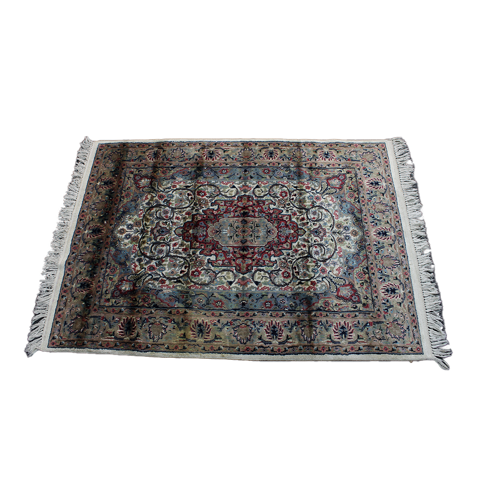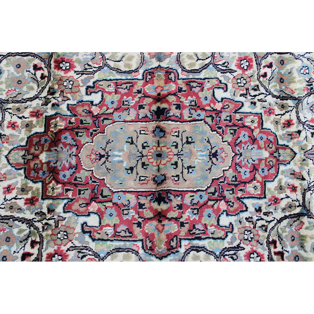 TAPPETO PERSIANO a medaglione centrale, lana su cotone, annodato a mano campo e bordure a ricco decoro floreale, presenta ombreggiature da uso Persia II metà del XX secolo cm 181 x 123