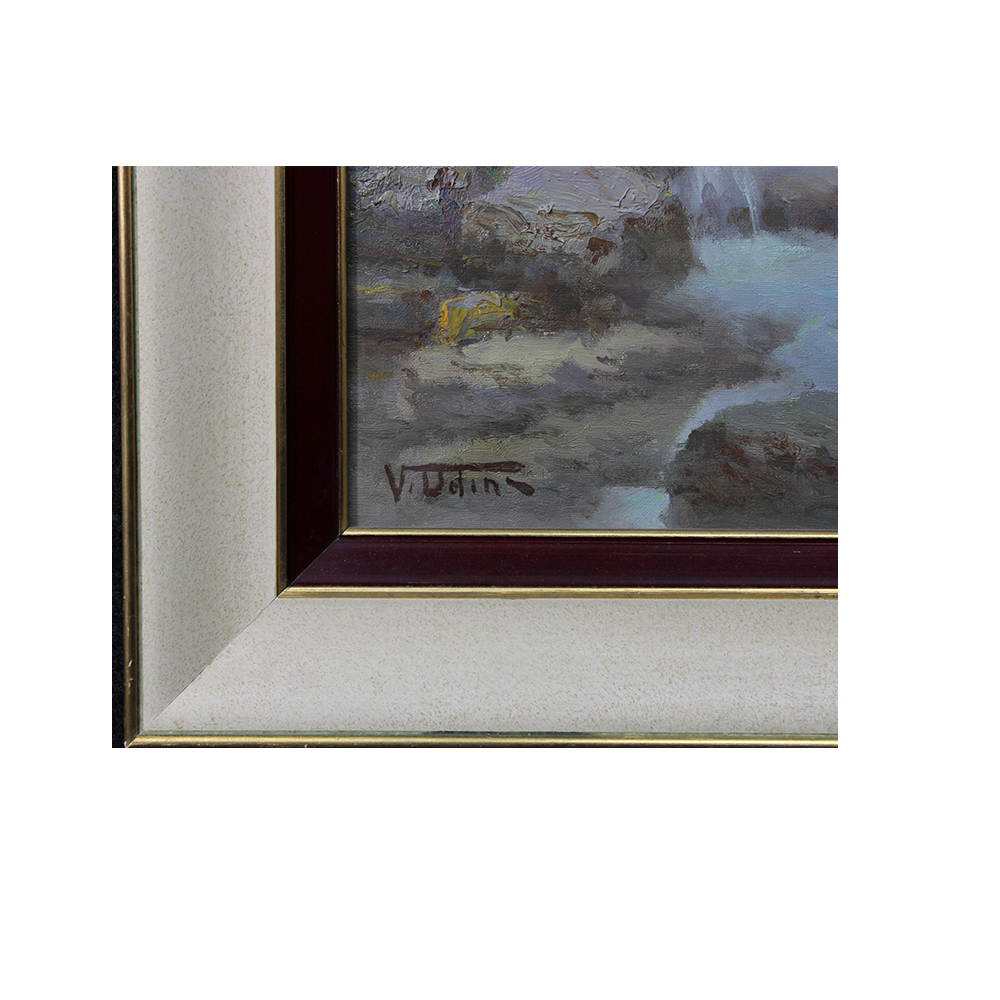 OLIO SU TELA raffigurante paesaggio con cascata firmato in basso d/x Vincenzo Udine Palermo 1898/1981 h cm 70 x 50 / cornice h cm 85 x 65