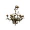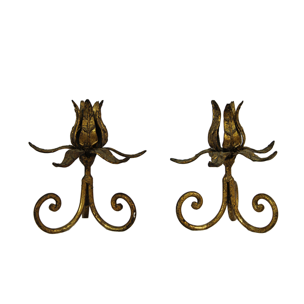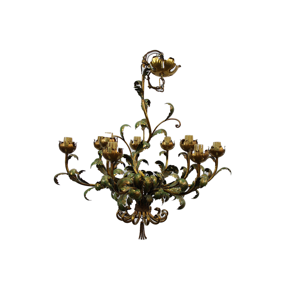 LOTTO COMPOSTO DA 1 lampadario in ferro battuto dorato e placcato a 9 luci ed 1 coppia di porta candele maestranze siciliane XX secolo h cm 75 x Ø 75 - h cm 16,5 x Ø 13