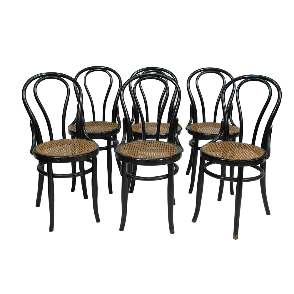 LOTTO DI 6 SEDIE THONET in legno ebanizzato con seduta in finocchino in 1 reca targhetta non leggibile Francia XIX secolo h cm 85 x 40 x 47