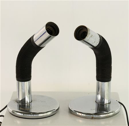 TARGETTI SANKEY Lotto composto da n.2 lampade da tavolo. Metallo cromato e plastica. Cm 34,00. Anni '70.