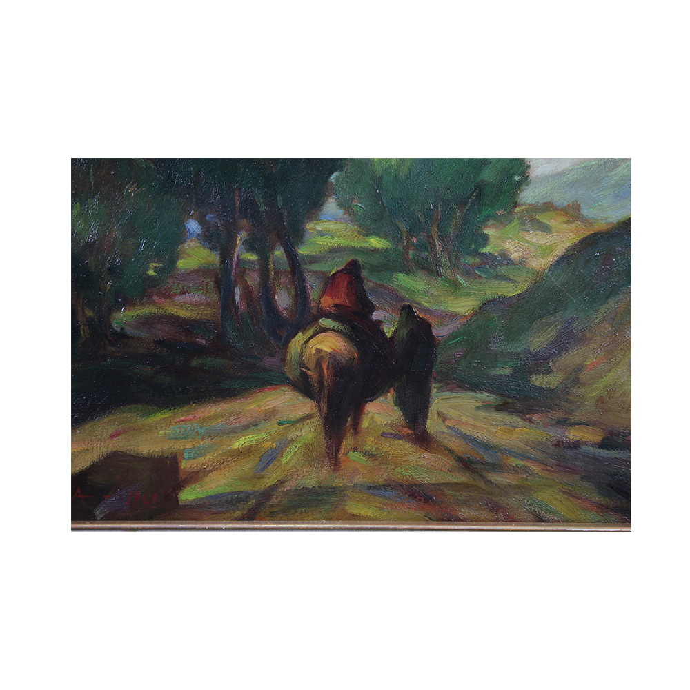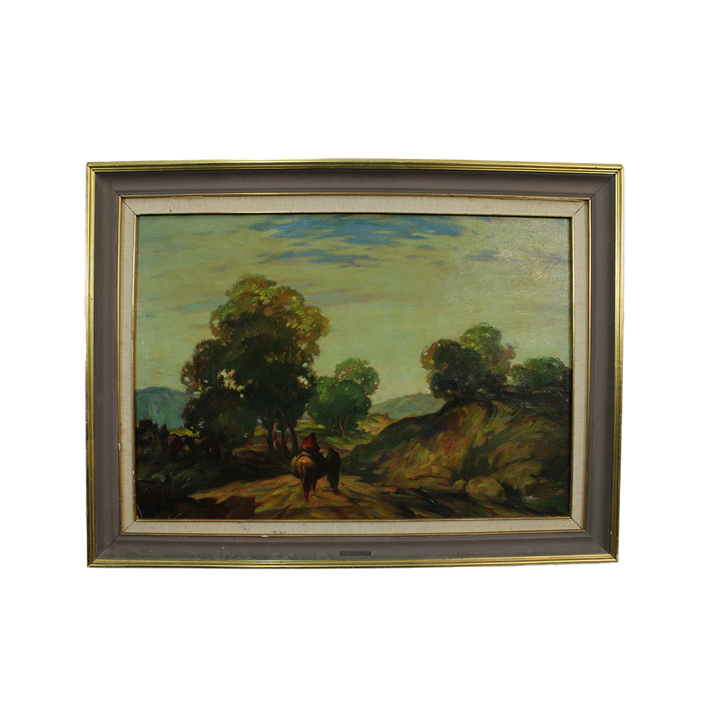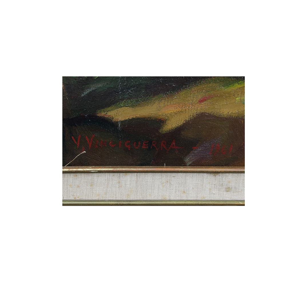 OLIO SU TELA raffigurante paesaggio campestre a firma V. Vinciguerra dentro cornice in legno laccato e dorato Caccamo 1922-2021 h cm 70 x 100 - cornice h cm 94 x 123